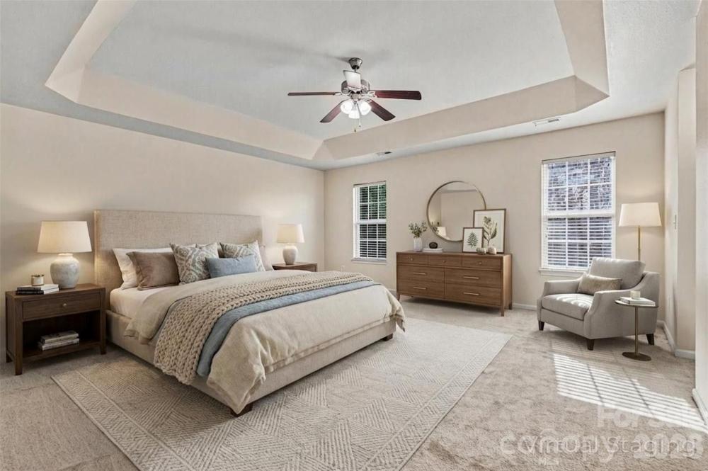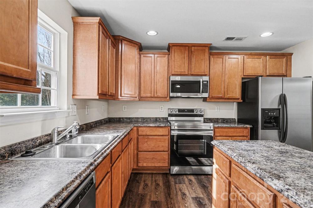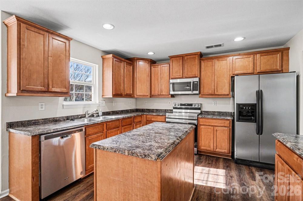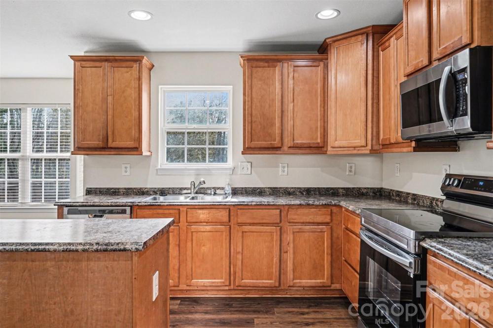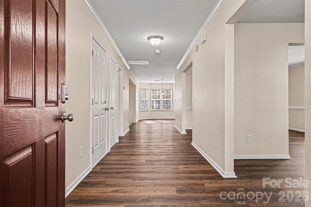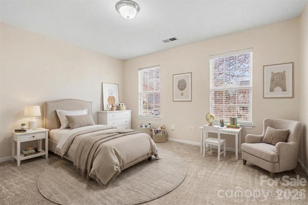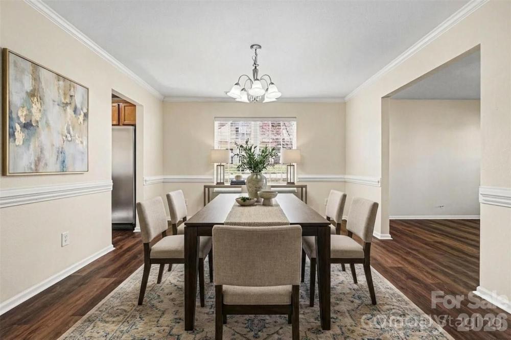 Welcome to this spacious two-story home in the desirable Leslie Brooke community of Charlotte, offering comfortable living with a thoughtfully designed layout and inviting curb appeal. The home’s attractive exterior combines stone accents, cedar shake details, and a welcoming front porch that creates a warm first impression. Inside, the home features an open and functional floor plan with generous living spaces designed for both everyday living and entertaining. A large living room and separate dining area provide flexibility for gatherings, while the kitchen opens to a bright breakfast area and family room, creating a natural central hub of the home. Large windows throughout bring in abundant natural light and highlight the spacious feel of the main level. Upstairs, the primary suite offers a relaxing retreat with plenty of room to unwind, accompanied by additional bedrooms that provide flexible space for guests, work-from-home needs, or hobbies. The home’s layout balances private bedroom areas with comfortable shared spaces, making it well suited for a variety of lifestyles. Step outside to enjoy the backyard, where a large deck overlooks the yard and surrounding trees, offering a peaceful setting for outdoor dining, relaxing, or entertaining. The property’s wooded backdrop provides added privacy while still being part of a welcoming neighborhood setting. Located in Charlotte’s growing north area, this home provides convenient access to shopping, dining, parks, and major roadways for commuting to Uptown Charlotte and surrounding areas. Combining space, functionality, and a convenient location, this home offers a great opportunity to enjoy comfortable living in an established community.