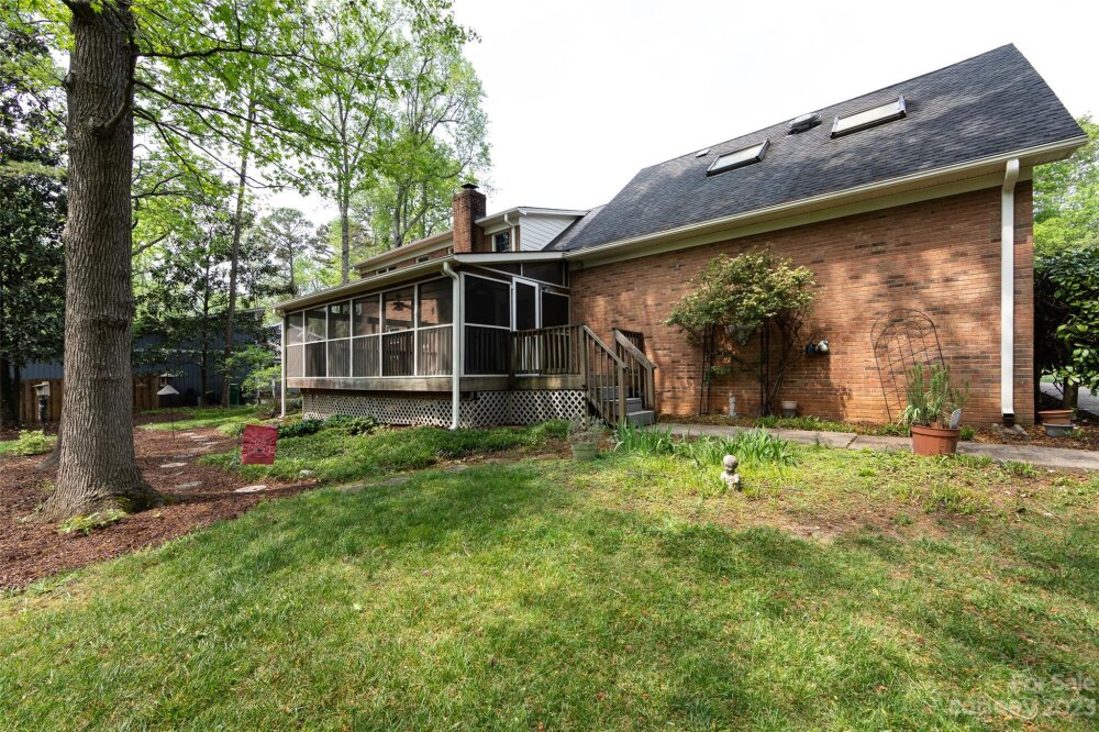 Curb appeal abounds in this desirable S. Charlotte neighborhood! Solid brick home w/ attached 2 car garage on almost a .5 acre lot awaits its new owner! Enjoy viewing nature in your quiet backyard setting from your 400 sf screened in porch. Inside, the main floor has a large formal entry that leads into the liv & dining rooms; a large family room w/ gas log FP; primary bedroom & bath w/ dual vanities; half bath & another bedroom that could be an office. French doors to the dining room also offer more flexibility to create private space. Upstairs you will find two more bedrooms that share a sizable full bath w/ dual vanities; a HUGE bonus room; & two walk-in attic spaces. Home has been freshly painted inside & out, ready for your personal touch. Carpeting & whole house professionally cleaned. Systems are newer & well maintained: Water heater, 2020; Gas furnace, 2019; Windows, 2020 (most replaced, not all); A/C, 2016 & 2019 (2 units). NO HOA! Come see how you can make this home your own!