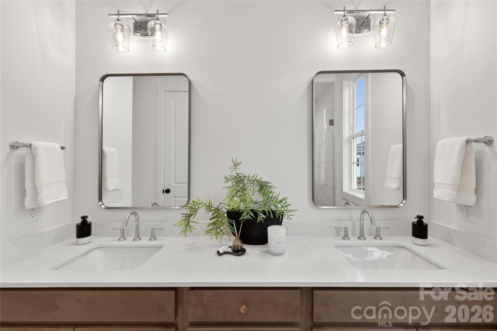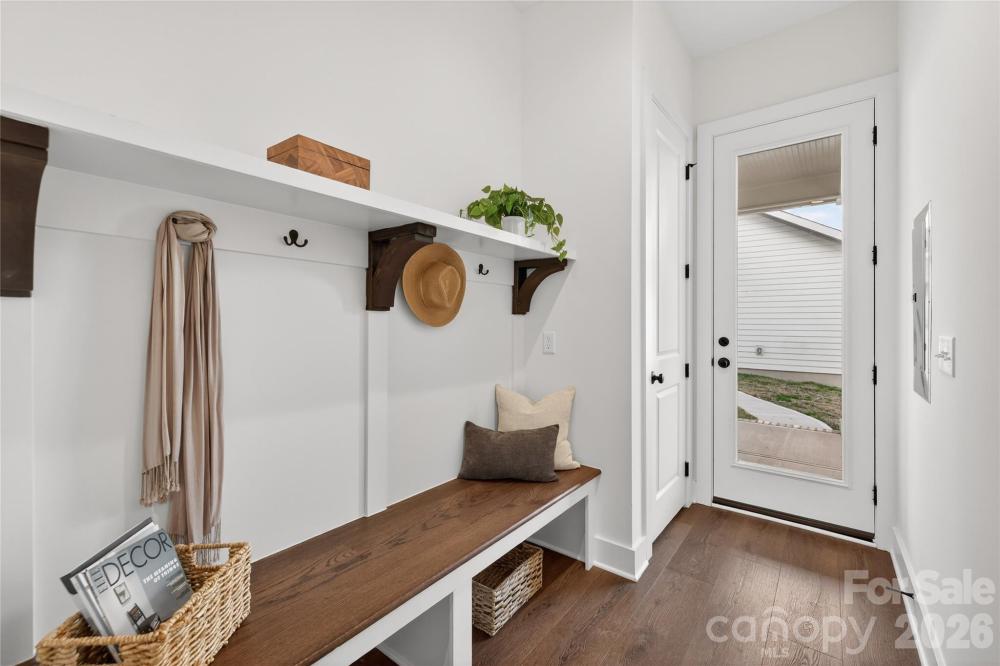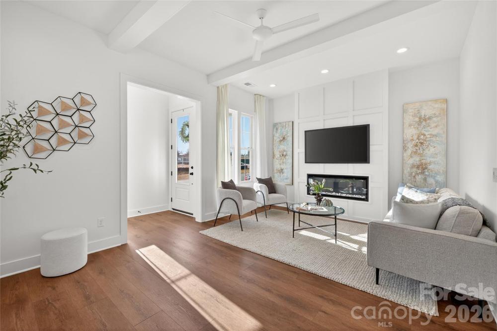 NEW CONSTRUCTION in East Charlotte -This gorgeous home has impressive front columns positioned on large brick pillars. This open concept design has 10' ceilings & 8' doors/cased openings on first floor. Upgraded design package w/stacked perimeter cabinets, undercabinet lighting, vented range hood, tile backsplash, quartz counter tops, & center island. Walk-in pantry. Ceiling beams in family room w/electric fireplace & judges paneling detail. Luxury vinyl plank flooring on main level & upper hallway. Drop Zone w/stained seat, upper shelf, brackets & hooks. Primary bedroom on main level w/LVP flooring, full bath, double vanity, tiled shower & huge walk-in closet. Cabinets in laundry room above w/d area. Open stair rails w/oak treads. 9' ceilings on upper level w/large bonus room, 2 guest bedrooms w/walk-in closets. Tub/shower combo in shared bath w/ceramic tile walls & flooring. Ring doorbell & camera w/Yale door lock. Covered rear porch & 2-car detached garage w/electric car charger. Front lawn maintenance & irrigation covered by HOA. *This home has been beautifully staged on the main level for showings*