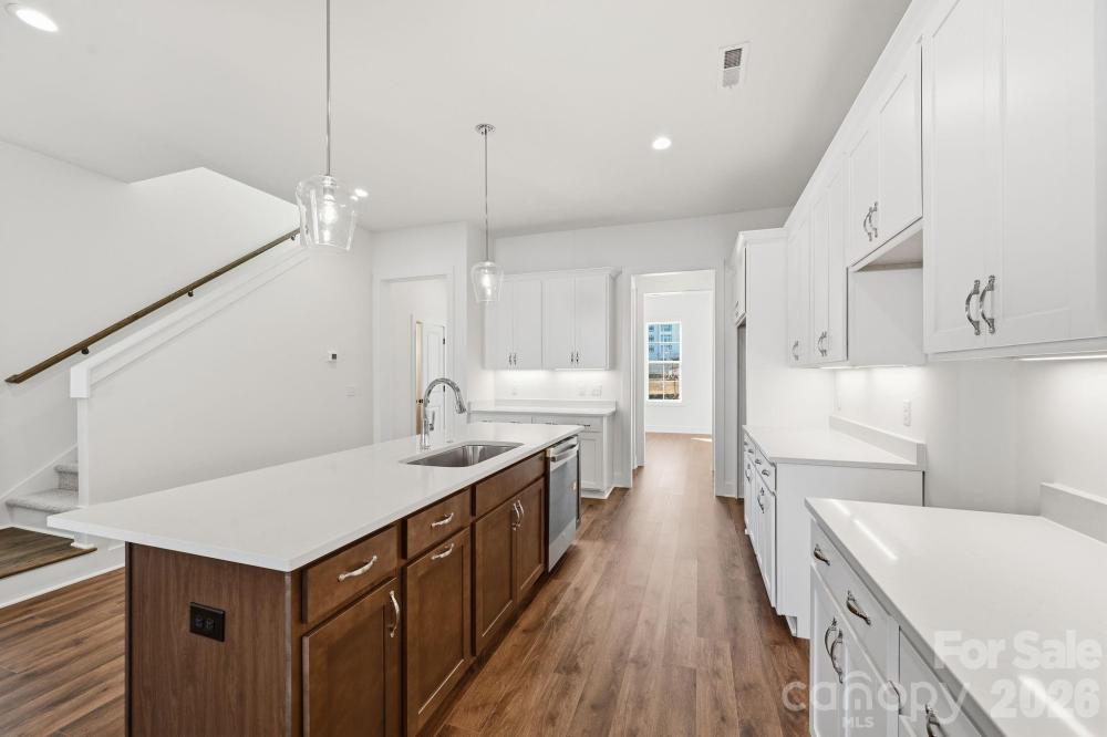 NEW CONSTRUCTION in East Charlotte - This outstanding home has an open design with 10' ceilings & 8' doors/cased openings on the first floor, a beautiful kitchen w/quartz counter tops, center island & under cabinet lighting. Huge walk-in pantry w/ventilated shelving provides generous storage. Electric fireplace w/mantle & floating shelves in family room. Luxury vinyl plank flooring on main level. Drop Zone w/lower seat, upper shelf, brackets & hooks. Primary bedroom on upper level with LVP flooring, full bath, double vanity, oversized tiled shower & walk-in closet. Cabinets in laundry room above washer/dryer location. 9' ceilings on upper level w/2 guest bedrooms (both with walk-in closets). Hall bath has tub/shower combo & ceramic tile walls & flooring. Covered rear porch designed for relaxed evenings. 2-car detached garage w/ electric car pre-wire - rear loading with alley access. Ring doorbell & camera w/Yale door lock. Front lawn maintenance & irrigation covered by HOA.