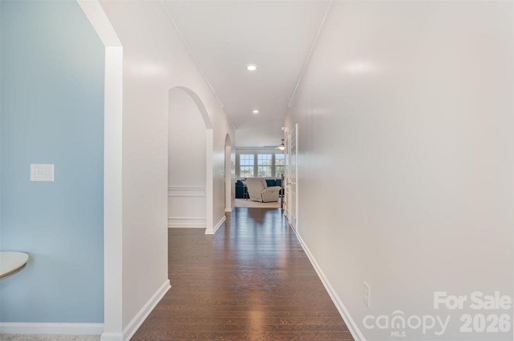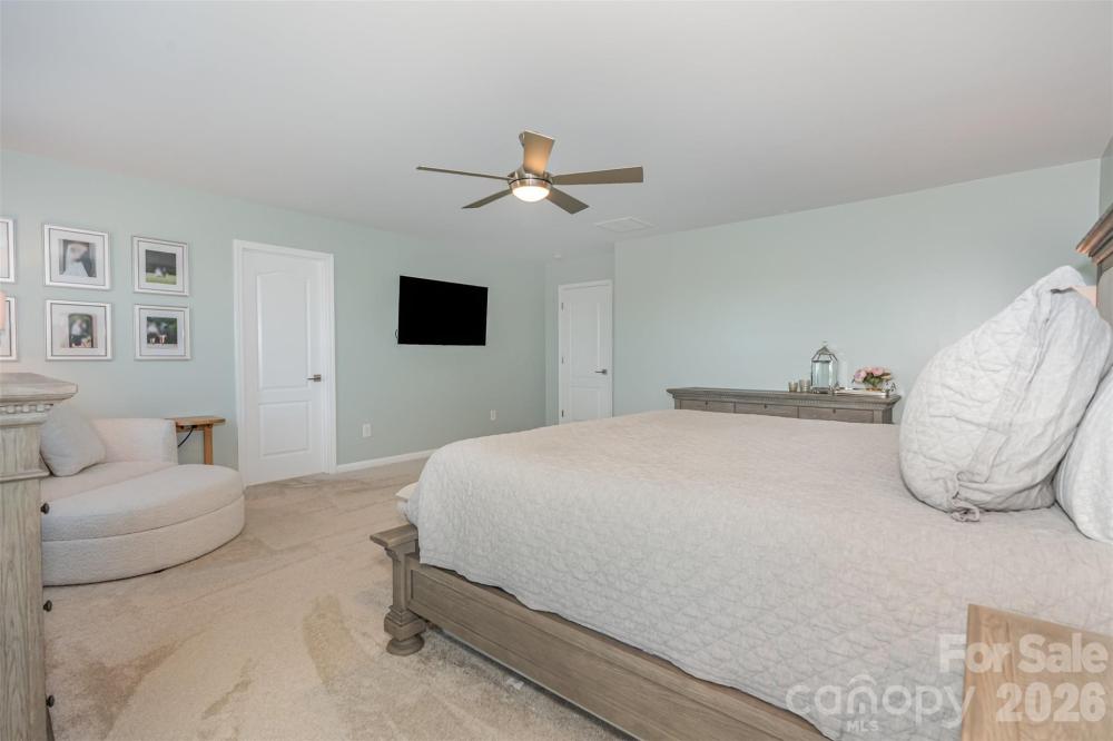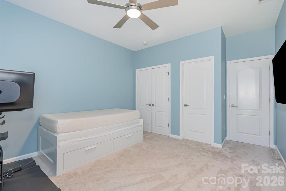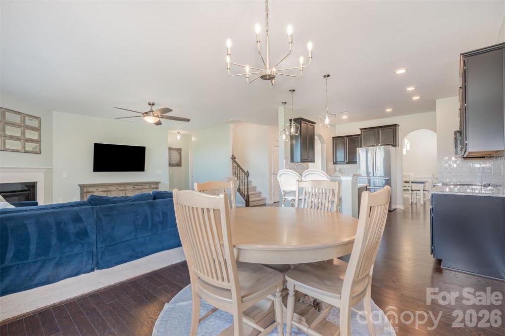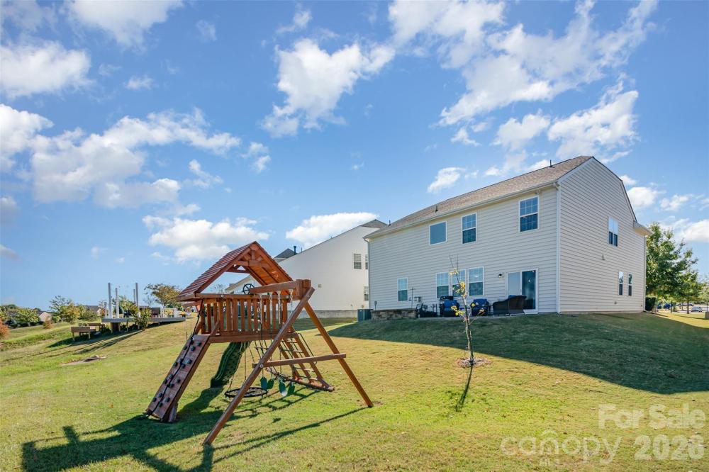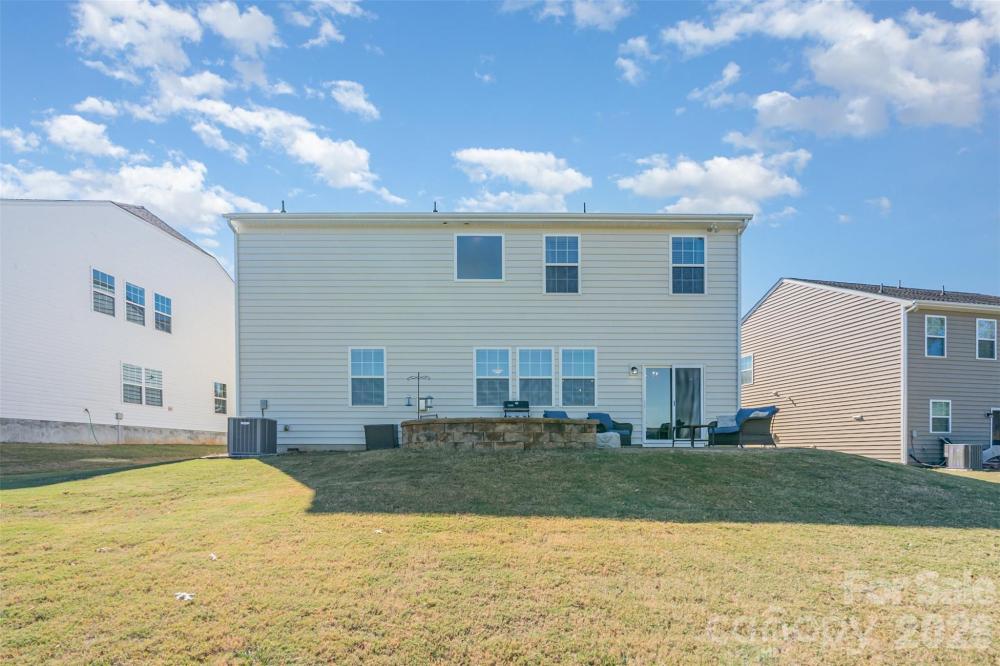 This two-story, single-family home offers a spacious and thoughtful open-concept layout with 5 bedrooms, 4.5 baths, and over 3,200 square feet of finished living space. Built in 2017, the residence features stylish finishes and modern amenities throughout. 3 bedrooms with private en-suite baths and 2 bedrooms share a jack-and-jill bathroom giving every bedroom direct access to a bathroom! The main level features a grand foyer, an open-concept kitchen, and a dining area that flows seamlessly into the great room. A kitchen fit for a chef offers granite countertops, stainless steel appliances, and a breakfast bar. Enjoy an oversized loft area upstairs creating additional living options. The home includes a first-floor bedroom with private bath for flexible accommodation. The primary bedroom, features a private bathroom with a soaking tub and a spacious walk-in closet. A stone patio with a fire pit offers a perfect setting for outdoor relaxation and entertaining. The back yard offers a ton of privacy as the area behind the house is a protected tree save area so there will not be any future development. The community provides access to a pool, playground, clubhouse, tennis court and fitness center located on Rhodes Hall Drive. Directly across from the house there is a large open dog play area Conveniently located in the Steele Creek area, the home is close to a variety of local dining, shopping, and entertainment options. Only minutes away from Charlotte Douglas International Airport! This home Qualifies for 100% Financing with NO mortgage insurance with Preferred Lender