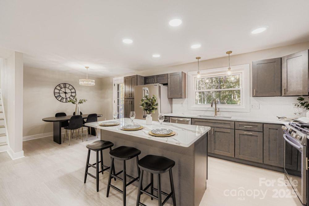 Beautifully renovated mid-century split-level on 1.92 acres with no HOA! This stunning home blends timeless charm with modern updates, offering the perfect balance of style, comfort, and functionality. The open-concept main level features a bright living room, spacious dining area, and a gourmet kitchen with quartz countertops, sleek cabinetry, a large island, and high-end finishes, ideal for everyday living or entertaining guests. Each room has been thoughtfully updated with fresh, modern touches while preserving the home’s classic character. Elegant ceramic and marble bathrooms exude sophistication, and large windows fill the interior with natural light, creating a warm and inviting atmosphere. The lower level provides a generous family room, perfect for movie nights, gatherings, or relaxing with loved ones. Every detail has been carefully considered to enhance comfort and livability. The expansive lot offers peace, privacy, and endless possibilities, ideal for outdoor recreation, gardening, or simply enjoying the serene natural surroundings. Located in the desirable Queen City area, this home combines the tranquility of a private retreat with the convenience of nearby shopping, dining, and major routes. Whether you crave room to expand, a haven to host, or a retreat to recharge, this home redefines versatility and modern elegance, a showcase of endless potential and timeless allure, where every detail is worth more than beautiful.
