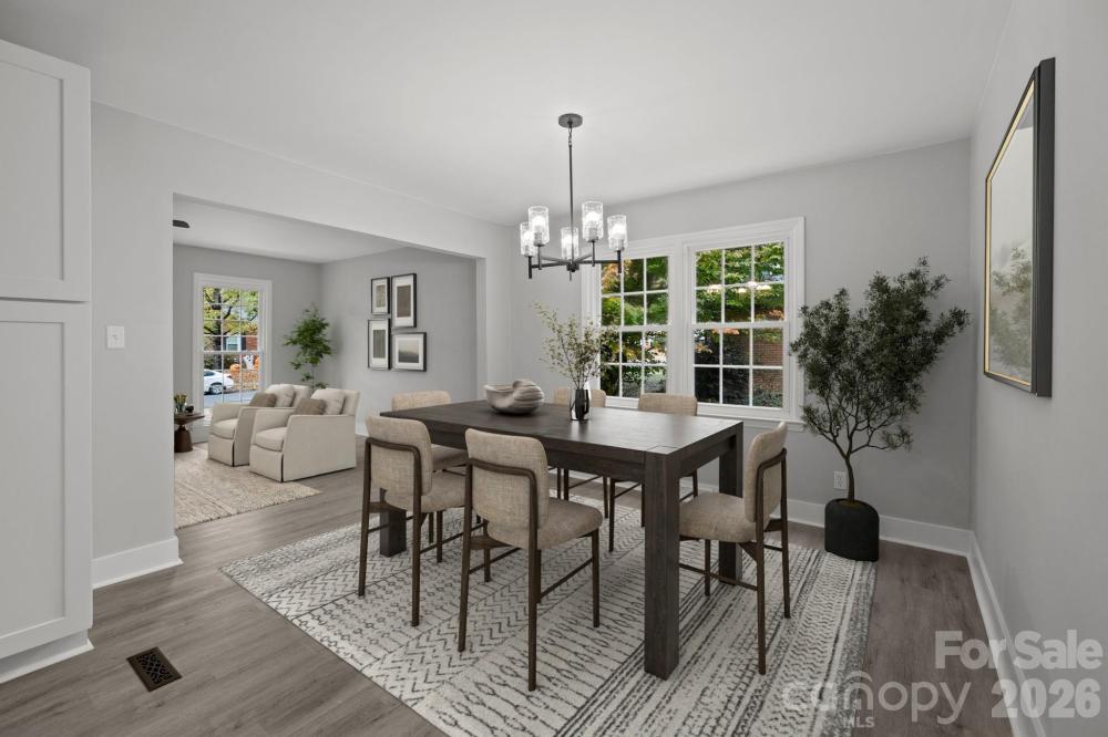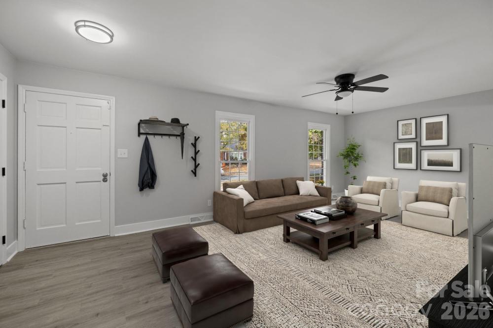 Freshly updated, starting with the Kitchen! Redesigned with today's look in mind, including new cabinetry, quartz-style counters, designer lighting, and new stainless steel appliances, including the refrigerator. New Bathrooms, New Flooring, New Lighting, New Closet Systems, New Landscaping. The open layout connects effortlessly to the dining and living areas, and the family room accesses the patio, the lightly wooded fenced backyard complete with oversized storage building and utility room. The family room’s wood-burning fireplace brings warmth and character, while the home’s thoughtful updates continue throughout—new flooring, custom closets, stylish bathrooms, and a dedicated laundry room designed for today’s routines. Both full bathrooms have been completely updated with fresh tile, modern vanities, and contemporary fixtures. This 4-bedroom, 2-bath home delivers modern comfort, fresh design, and unbeatable convenience—all in one of Charlotte’s most established and accessible neighborhoods. All the updates are done. The layout is easy. The location sells itself. Just move in—and start enjoying the best of Charlotte living.