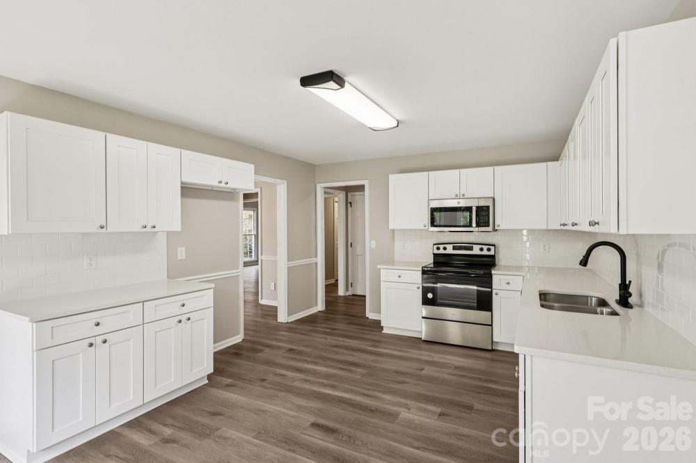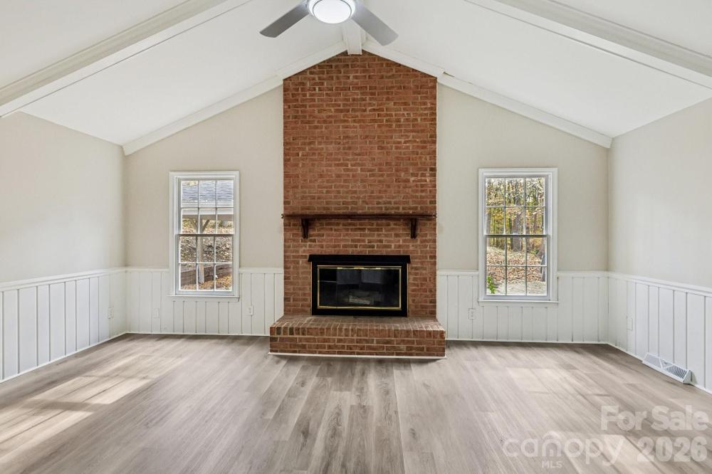 Welcome to this beautifully updated home in the highly sought-after Sturnbridge community — where charm, function, and location come together effortlessly. Step inside to soaring vaulted ceilings and a stunning floor-to-ceiling fireplace that anchors the spacious living area with warmth and style. The kitchen is both modern and inviting, showcasing quartz countertops, a subway tile backsplash, crisp white cabinetry, and stainless steel appliances that make cooking a joy. Thoughtfully designed with full baths on both levels, the layout offers flexibility for dual primary suites or private guest space. Outside, a generous backyard and a wrap-around porch provide the perfect setting for relaxation or entertaining. With a newer roof, peaceful surroundings, and easy access to dining, shopping, and major highways — this home delivers the perfect balance of comfort, convenience, and timeless appeal!