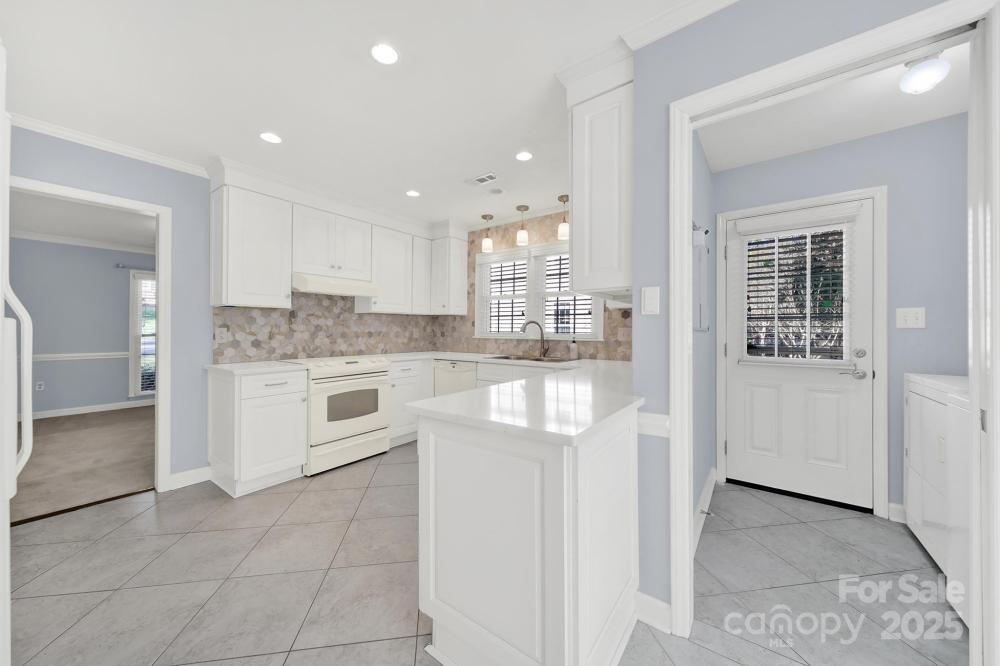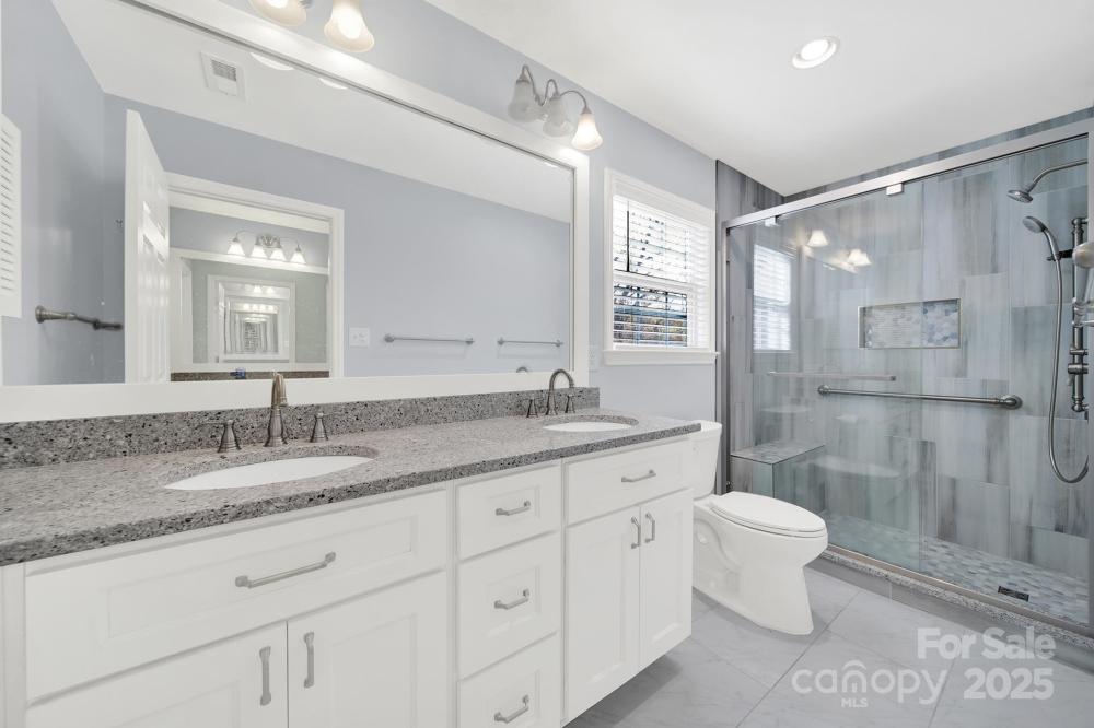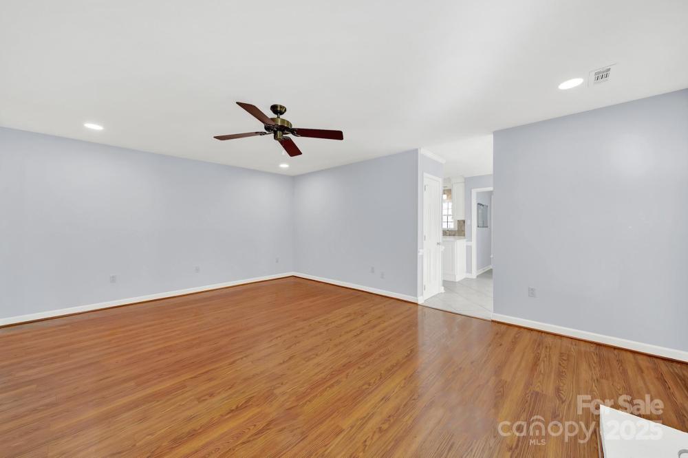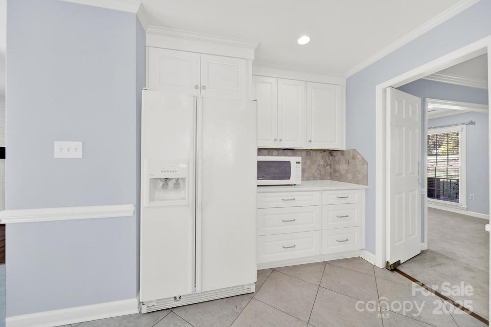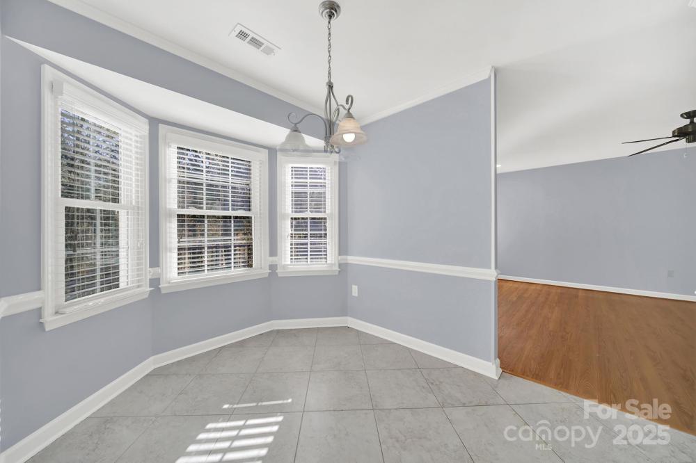 Welcome home to this classic all-brick 4-bedroom, 2-bath ranch with a welcoming southern-style front porch! Featuring a fantastic floor plan and generously sized rooms, this home blends timeless character with modern updates. Enjoy newer carpet and fresh paint throughout. The beautifully updated kitchen boasts white cabinetry, soft-close drawers, roll-out shelving, quartz countertops, a stylish tile backsplash, a pantry, and a cozy eat-in breakfast area. The inviting family room features a natural gas log fireplace—perfect for relaxing evenings. Large windows in the living and dining rooms fill the home with abundant natural light. A spacious laundry/mudroom adds everyday convenience. The primary suite offers a stunning, fully renovated bathroom, while three additional bedrooms and another full bath provide plenty of room for family or guests. Step outside to a peaceful backyard complete with a deck for outdoor entertaining and a locked storage area. The property backs up to a small creek, with Four Mile Creek Greenway just beyond the tree line—creating a serene and natural retreat right at home. You can even take the Greenway to Ballantyne Bowl or Stonecrest, making it an ideal choice for those seeking a vibrant, connected community lifestyle.