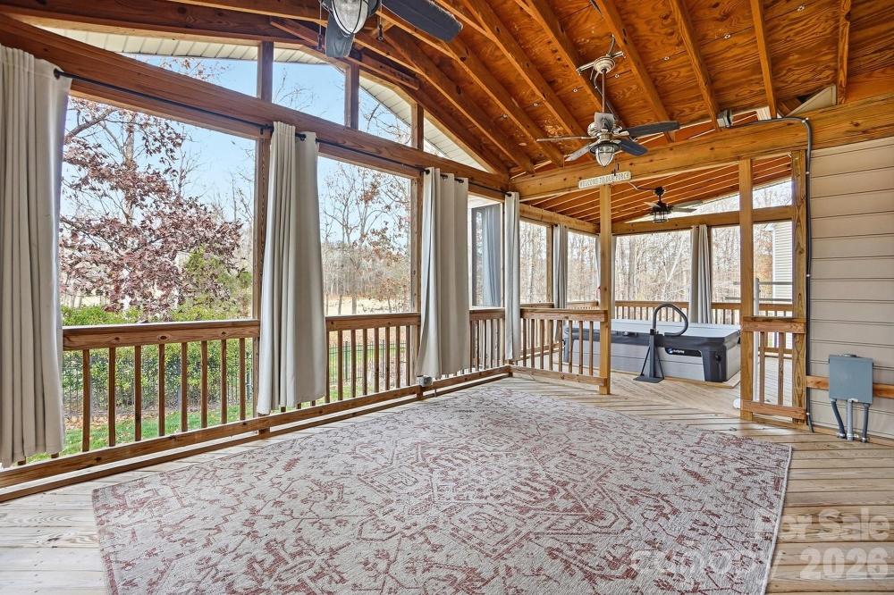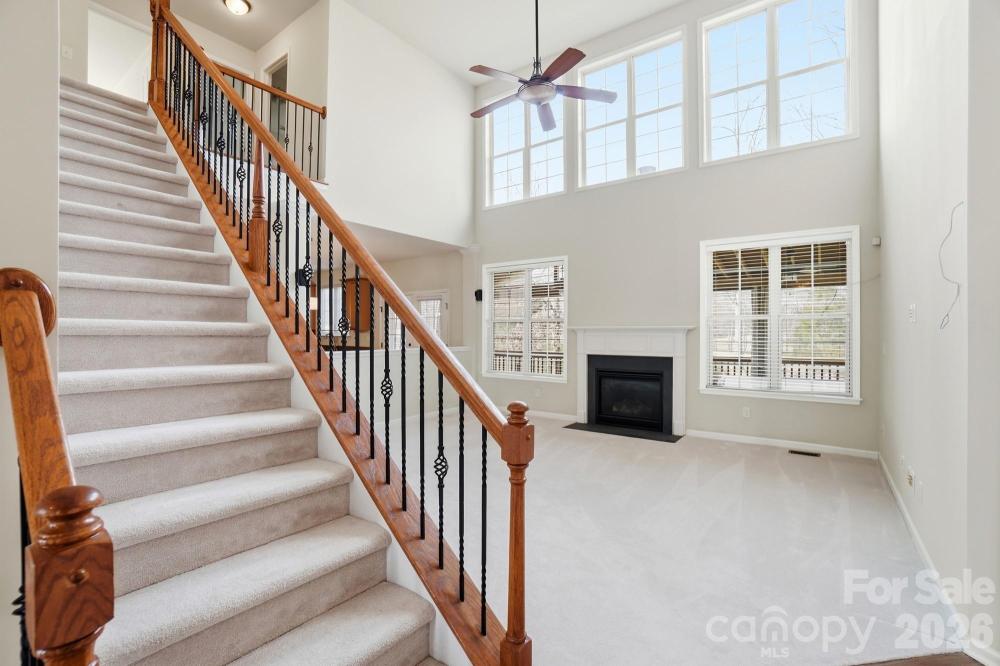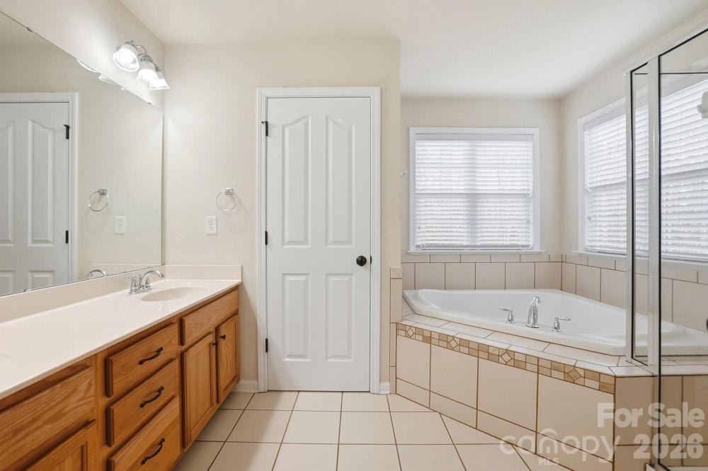 Welcome to this beautiful two-story brick home located in the highly sought-after Olde Sycamore. Step into the stunning two-story great room highlighted by a gas log fireplace and expansive windows that flood the space with natural light. The bright breakfast nook sits just off the kitchen, which features an island with seating, pendant lighting, a tile backsplash, computer niche, and abundant storage. A formal dining room with wainscoting accents and a stylish chandelier anchors the front of the home, while double doors across the foyer open to a private home office or study. A main-level bedroom with access to a full bath adds convenience and flexibility for guests or multigenerational living. Upstairs, the spacious primary suite offers a serene retreat with an ensuite bath that includes a dual-sink vanity, soaking tub, and walk-in shower with glass door. Three additional bedrooms share a full hall bath, and a large bonus room provides excellent versatility - perfect as a media room, playroom, or even a sixth bedroom. The fully fenced backyard provides a private outdoor retreat complete with a saltwater hot tub - ideal for relaxing and enjoying the crisp autumn evenings. Whether you’re hosting friends or unwinding after a long day, this backyard oasis offers the ideal space to recharge. Known for its picturesque, tree-lined golf course, Olde Sycamore residents also enjoy access to a variety of additional amenities including a clubhouse, community pool, and tennis courts, all designed to complement an active lifestyle. Conveniently located just minutes from Mint Hill Veterans Memorial Park, you’ll have even more opportunities for recreation with additional tennis courts, playgrounds, walking trails, and open green spaces. This inviting home offers the perfect blend of relaxation, recreation, and community - all just a short drive from the shops and restaurants of Mint Hill.