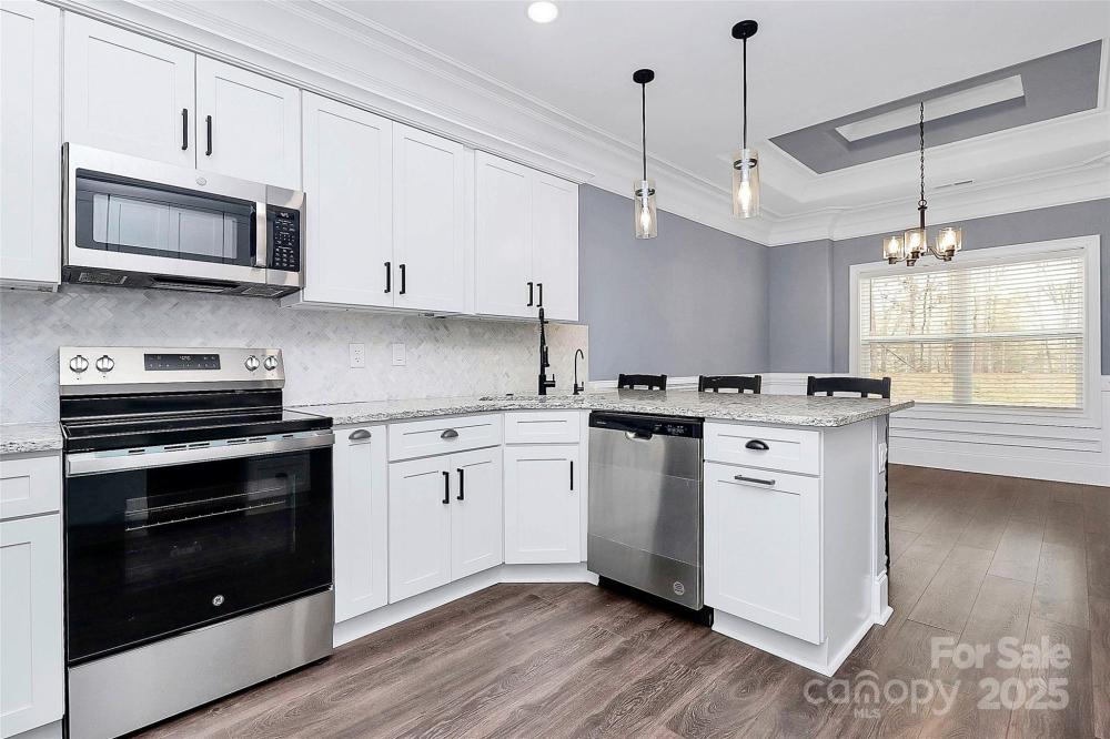 Move-in ready custom-built 1.5-story home situated on a flat lot under half an acre with no HOA. This home offers 4 bedrooms and 3 full bathrooms. The main level features 9-foot ceilings, a living room with fireplace, and an open kitchen with granite countertops, stainless steel appliances, custom cabinetry, tile backsplash, water filtration system, beverage refrigerator, pantry, and updated lighting. Laundry room on main level. The primary bedroom is located on the main floor and includes a tray ceiling and en-suite bath with dual sinks and ceramic tile. An additional bedroom and full bathroom are also located on the main level. The upper level includes a loft, two bedrooms with walk-in closets, a full bathroom, and a separate office. Hardwood stairs and architectural archways throughout. Exterior features include a large partially covered patio, flat backyard, and new wood privacy fence.