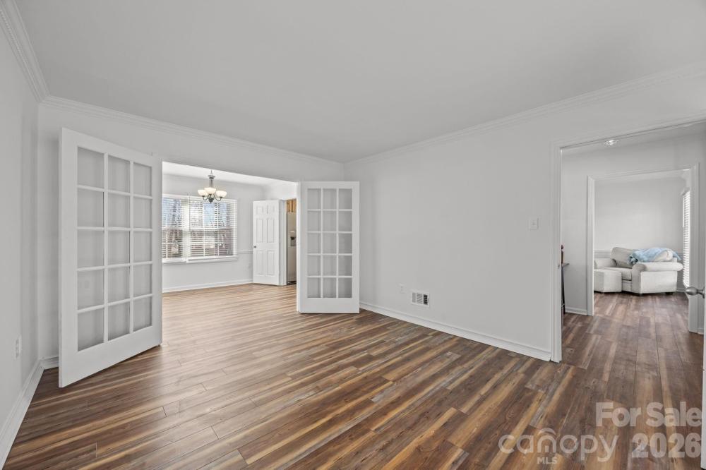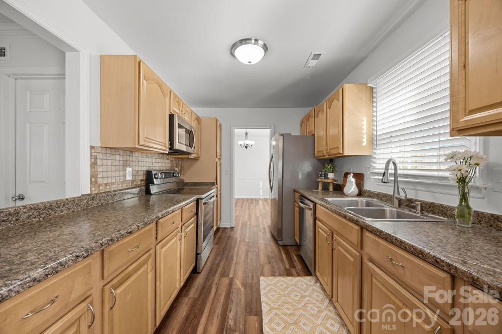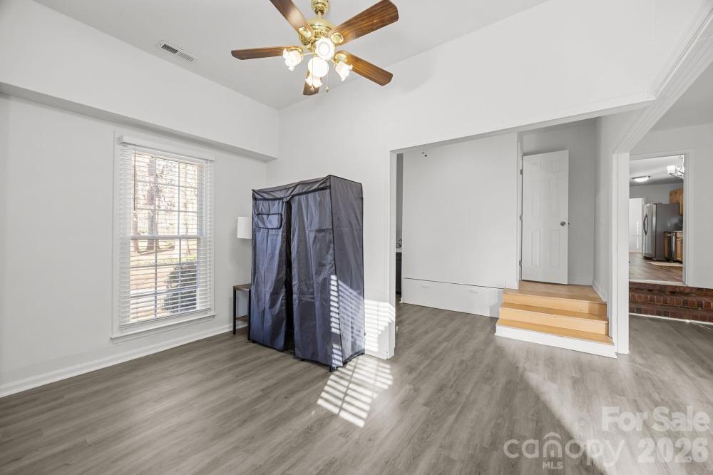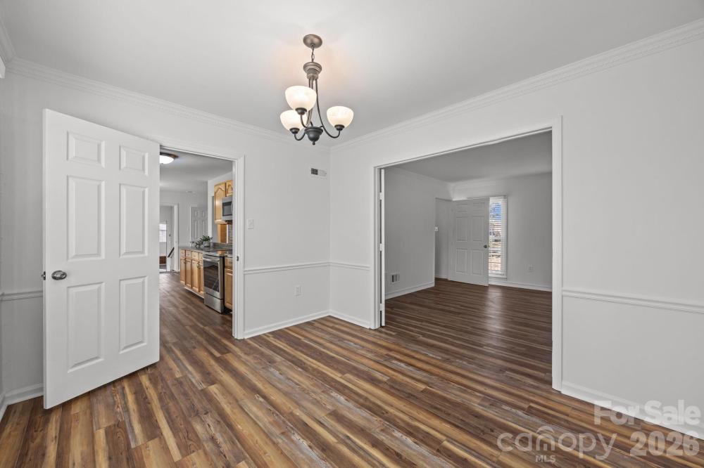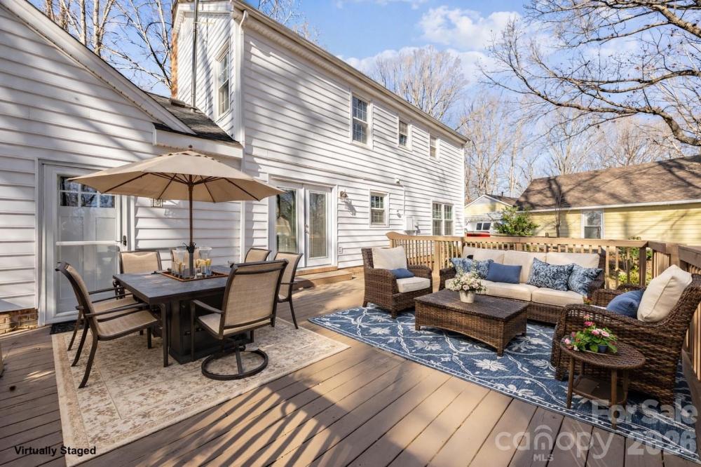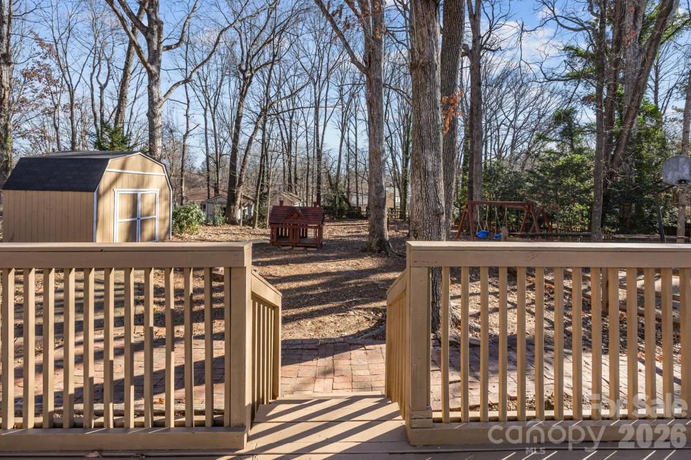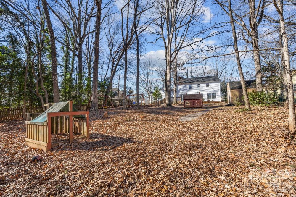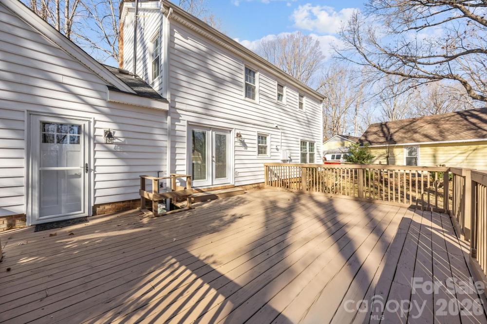 Tucked away on a private, fully fenced wooded lot, this home is a true sanctuary, offering the perfect blend of seclusion and convenience. Surrounded by mature trees, this thoughtfully updated home offers a peaceful retreat from the hustle and bustle of daily life while still being just minutes from the vibrant Arboretum, charming downtown Matthews, and top-rated schools. Inside, natural light fills every room, creating a warm, inviting atmosphere throughout. The spacious living areas are designed for both everyday comfort and gracious entertaining, with a cozy fireplace featuring new gas logs (2021) as the heart of the main living space. The flexible main-level room with its own private entrance and access to a full bathroom offers endless possibilities, ideal as a guest suite, home office, creative studio, or multigenerational living space. The formal living and dining rooms offer additional options, allowing you to adapt the home to your lifestyle. Recent updates provide peace of mind: a new water heater, HVAC, attic stairs, fresh interior paint, and updated flooring (2022), ensuring the home is move-in ready. Exterior improvements, such as new vinyl siding, windows, and doors, provide added durability and efficiency, and all appliances are less than five years old. Outside, the freshly stained deck (2025) invites you to unwind, entertain, or enjoy a quiet meal in the serenity of your private wooded yard. Two additional outbuildings provide versatile storage or workspace, adding even more value to this exceptional property. Located in a welcoming, established neighborhood with no HOA, this home is more than just a place to live; it’s a place to thrive. Whether you’re looking for a retreat, a space for personal passions, or a family-friendly home, 8215 Schooner Ln offers a rare combination of privacy, flexibility, and unmatched convenience. Don’t miss the opportunity to experience this special home. Contact us today to schedule your private showing and see how this home can be the perfect fit for your lifestyle.