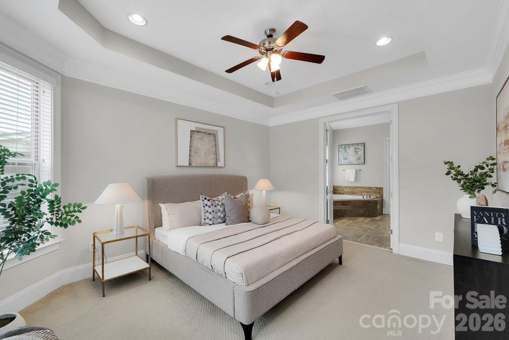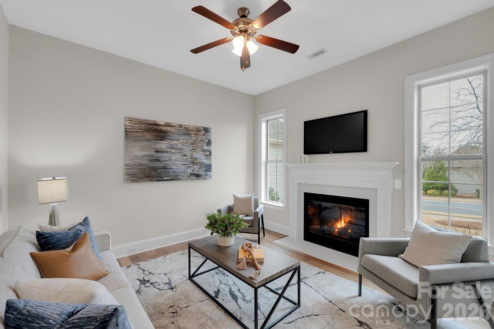 Experience the perfect blend of sophisticated design and effortless living in this meticulously maintained home, Here at 14920 High Bluff Court! Tucked away in the highly sought-after Regency at Palisades. This rare, single-level floor plan is a dream for those who value an open-concept flow and high-end details. The heart of the home is a chef-inspired kitchen featuring a massive island and premium cabinetry, flowing seamlessly into a light-filled living area. You’ll find unique, upscale touches throughout, including a dual fireplace that warms both the family room and the private executive study—a feature that truly sets this property apart. High tray ceilings, integrated surround sound, and pristine hardwood floors create an atmosphere that feels both natural and timeless. Step outside to discover a lifestyle of pure relaxation where the lawn maintenance is handled for you. Enjoy your morning coffee on the private screened porch or host friends on the back patio overlooking a beautifully landscaped, level backyard. Living here means more than just owning a beautiful home; it means having exclusive access to resort-style amenities including indoor and outdoor pools, fitness centers, pickleball courts, and the nearby shores of Lake Wylie. This is an invitation to spend more time enjoying life and less time on chores. Don't just dream the lifestyle—live it. Message us today for your private showing.