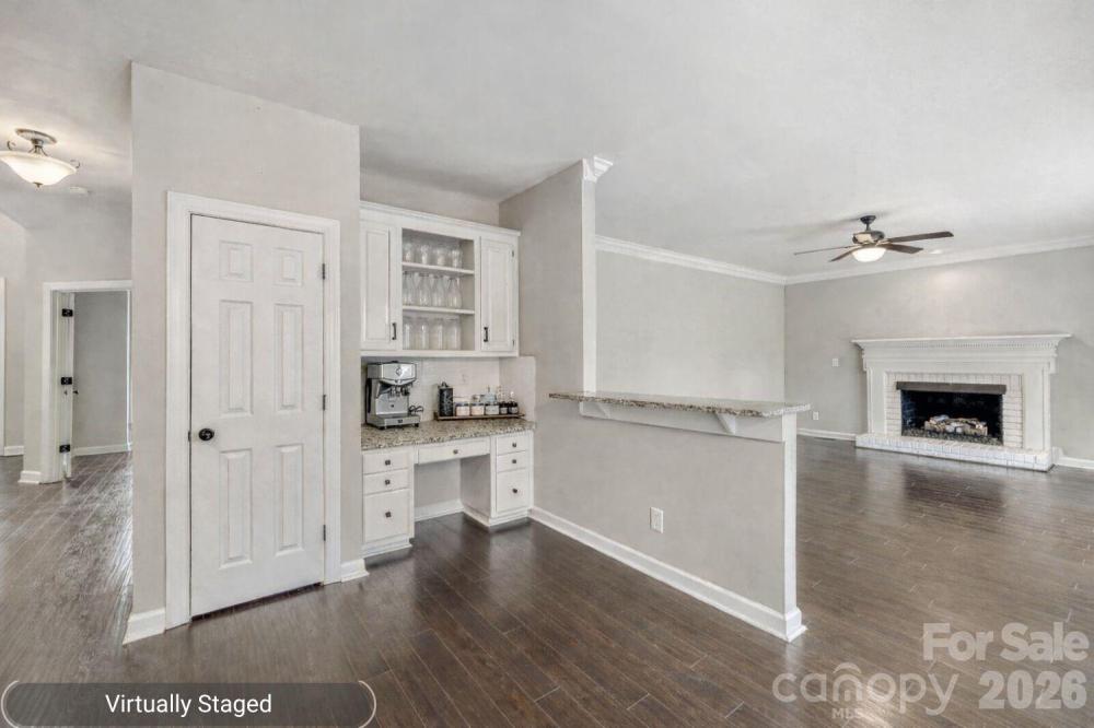 Welcome to 12416 Sylvan Oak Way, located in the established Oak Ridge section of The Crossings neighborhood in Charlotte’s desirable Steele Creek area. With just over 3,000 square feet of thoughtfully designed space, this 5-bedroom home with multiple flexible living areas offers comfort and functionality. The home greets you with a two-story foyer and a layout that feels both open and connected. Just off the entry, there is a dedicated office to the left, ideal for remote work or homework, and a living space to the right that flows into a formal dining room with easy access to the kitchen. The central hub of the home includes granite counters, kitchen island, stainless appliances, and a casual breakfast nook overlooking the backyard. The family room sits just beyond, featuring a brick fireplace with gas logs and a door that leads to the backyard, extending your living space outdoors. Upstairs, 4 bedrooms plus a 5th bedroom or flex room offer plenty of space for sleeping, play, study, or media needs. The primary suite features a spacious en-suite bath with a frameless tile shower and separate garden tub. A second full bath with tile wall accents add both style and function for the rest of the family. Crown molding throughout the main level adds a touch of refinement, while practical features like a laundry room with sink, ample closet space, walk-in pantry, and an efficient floor plan contribute to everyday ease. Step outside to enjoy a fenced backyard framed by mature trees, ideal for gatherings, play, or peaceful relaxation. The deck boards were replaced and new vapor barrier was installed in the crawl space in 2025. This home balances quiet neighborhood living with everyday convenience to nearby shopping, schools, and major roadways. Residents of The Crossings enjoy access to community amenities including a pool, clubhouse, and playground, adding even more value to everyday living. If you’re looking for a spacious home with a flexible layout, thoughtful updates, and room to add your own finishing touches, 12416 Sylvan Oak Way offers lasting potential in one of Charlotte’s most convenient locations.