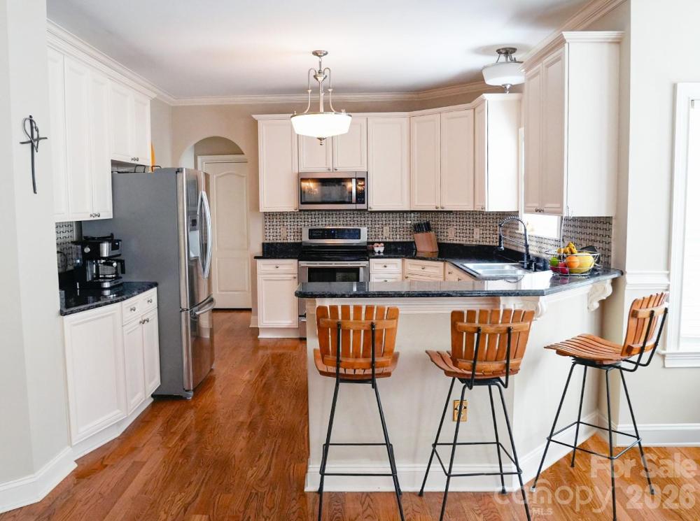 Say goodbye to HOA letters and hello to total freedom! Nestled in the peaceful North Creek subdivision, this exquisite full-brick home offers the rare combination of high-end custom quality and a private, unrestricted lifestyle just minutes from Charlotte’s best attractions. Whether you dream of a backyard homestead with chickens, a massive garden, or simply unmatched privacy, this is your sanctuary. Inside, the home radiates warmth with gleaming natural oak hardwoods and airy 9-ft ceilings. The chef’s kitchen is designed for gathering, featuring granite countertops, a basketweave travertine backsplash, and a sunlit breakfast nook. Retreat to the main-level living areas or head upstairs to the immaculate primary suite, boasting deep tray ceilings and a spa-inspired bath with custom millwork. The "showstopper" is your outdoor oasis: a fully fenced, tranquil backyard with a stunning pergola, fountain, and travertine patio—perfect for entertaining in peace. Plus, PAID-OFF SOLAR PANELS mean you can run your AC guilt-free with little to no electric bill! Unbeatable location: 3 mins to Food Lion, 8 mins to Riverbend Village/Harris Teeter, and a quick 20-min commute to Uptown. Freedom never looked this good—schedule your tour today!