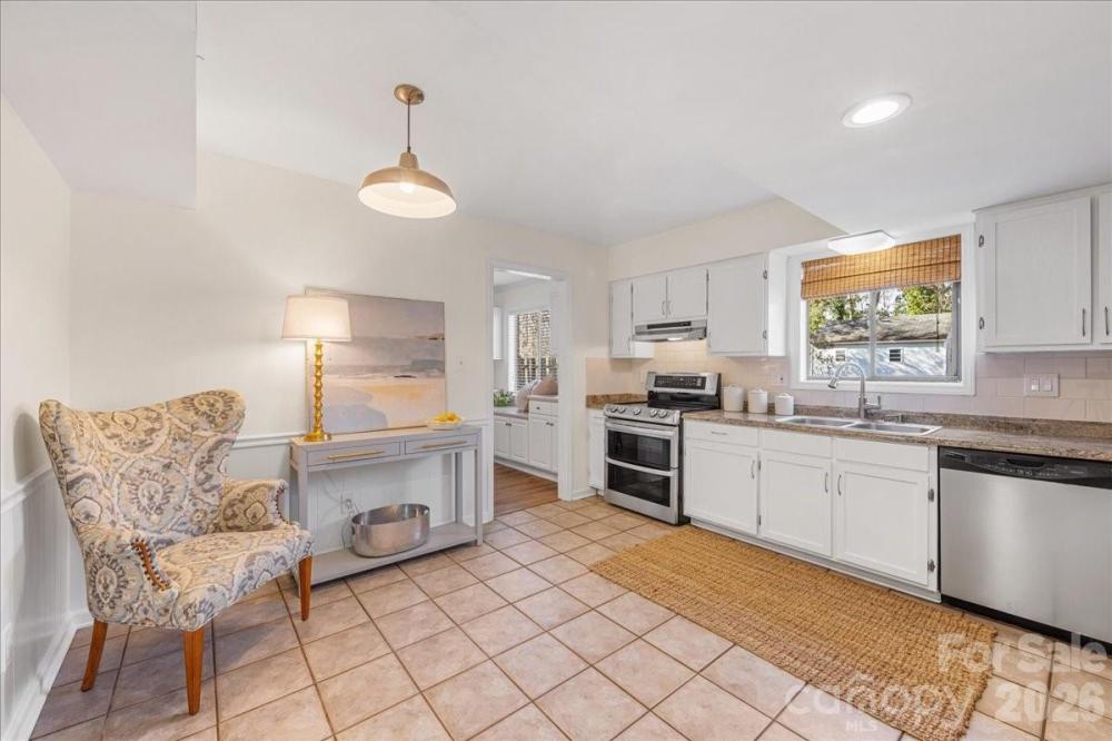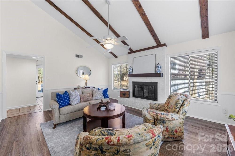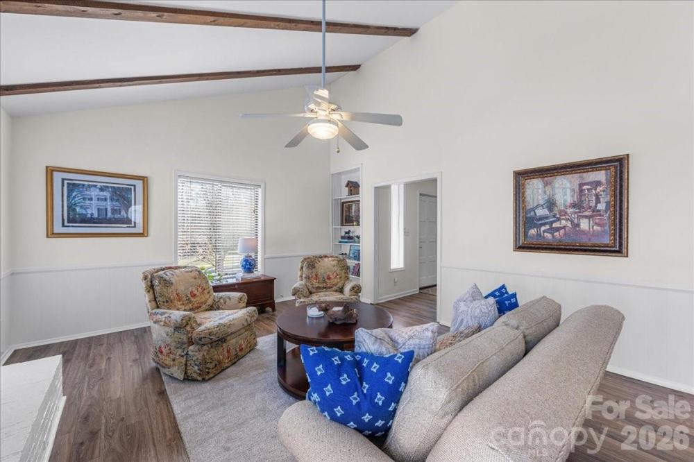 This charming two-story residence in Charlotte's sought-after Stonehaven neighborhood offers a perfect blend of classic architectural character and fresh, modern updates. The entire interior has been freshly painted in a neutral palette. A spacious great room serves as the home's centerpiece, featuring soaring vaulted ceilings that maximize natural light and create an airy, open feel. Wood beams and a gas log fireplace add to the ambiance. A separate, intimate living room provides a versatile secondary living space, ideal for a media room with surround sound or a quiet retreat. The living room opens to the dining room with built-ins. Kitchen features stainless appliances, white cabinetry and walk in pantry. The second story highlights three bedrooms and two baths. The primary suite features a private en-suite bath and ample closet space, while the two additional bedrooms share a second full bathroom. Large backyard, patio and wired shed. Stonehaven is known for its winding, tree-lined streets and exceptional recreational amenities. Sardis Swim and Racquet Club is walking distance and offers premier club amenities, including a competition length pool, tennis and pickle ball courts and a vibrant social calendar. Enjoy easy access to the McAlpine Creek Greenway for walking, biking, and exploring miles of nature trails. 73 acre Boyce Road Park is also nearby. Situated just minutes from SouthPark Mall and Cotswold, the neighborhood offers a quick commute to Uptown Charlotte.