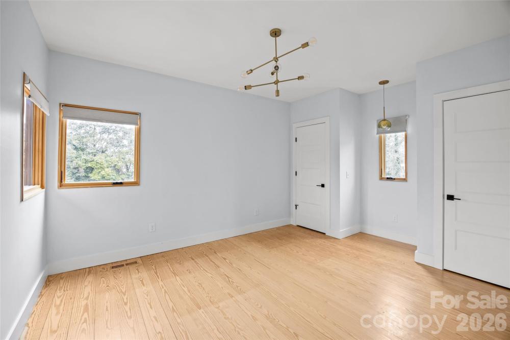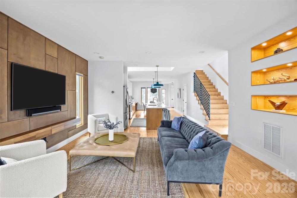 Drawn by esteemed Charlotte architect Alter Architects and masterfully built by Spoke & Hammer—whose work has been profiled in The New York Times—this striking Scandinavian modern residence is truly one of a kind. Overbuilt with intention and craftsmanship, it represents a first-of-its-kind approach to energy efficiency, pairing high design with high performance. A dramatic standing seam metal roof crowns the home, complementing its clean architectural lines and enduring construction. Inside, pine floors run throughout light-filled interiors drenched in natural sunlight, streaming through aluminum-clad casement windows that perfectly frame the neighboring church and surrounding landscape like curated works of art. The main living area and primary suite are elevated by custom wood paneling, adding warmth and depth to the modern aesthetic. A sculptural staircase with custom metal railings crafted by 2dash1 serves as a functional centerpiece—artful, architectural, and unmistakably bespoke. This is not simply a home; it’s a statement in design, efficiency, and enduring quality. Paired with special financing that allows qualified buyers to finance 100% of the value with no PMI, this is an opportunity not to be passed by. This is a design-forward, performance-driven home paired with a financing advantage not to be missed.