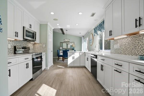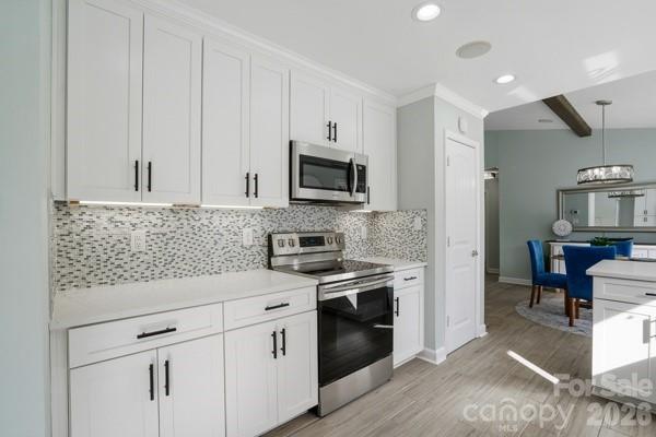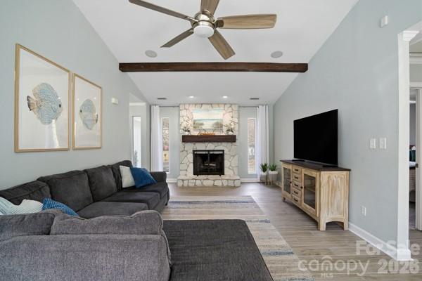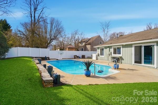 Vacation at Home! This gorgeous, modern ranch in sought-after Raintree offers the perfect blend of comfort, style, and resort-like living, complete with a saltwater inground pool. Designed with a split-bedroom floor plan, the home features a vaulted great room with a stunning wood-burning stone fireplace that opens to a sunny dining area overlooking the spectacular backyard. The beautifully updated kitchen showcases white shaker cabinetry, quartz countertops, a custom mosaic tile backsplash, under-cabinet lighting, and custom drawer pullouts, including built-in trash and recycling. An oversized sink with a custom cutting board overlooks the pool, and a convenient pass-through window makes outdoor entertaining effortless. Tile flooring runs throughout the main living areas, while the bedrooms offer plush carpeting. The spacious primary suite includes a ceiling fan and an expansive walk-in closet with an exceptional organization system. The spa-inspired primary bath features luxurious, modern finishes. The secondary bedrooms are generously sized with ample closet space and share a beautifully appointed spa-like bath. Step outside to your private backyard oasis and enjoy low-maintenance artificial turf and rubber mulch landscaping, giving you more time to relax and unwind. The saltwater pool has been meticulously maintained, includes a pool vacuum, and is kept running year-round by the current owners. In 2024, a new variable-speed pool pump and new cartridge filter were installed, adding efficiency and ease of maintenance. A gas tankless water heater adds efficiency. A new privacy fence was installed in 2024. Professional landscapers refreshed the front landscaping, new gutters and the exterior of the home was professionally painted in February 2026. A portion of the garage was enclosed to create the expansive primary closet, and the remaining space is currently used for storage. Conveniently located near shopping with easy access to 485 and zoned for award-winning schools. Raintree Country Club initiation is waived - membership is optional. Contact membership@raintreecc.net for details. Agent is related to seller.