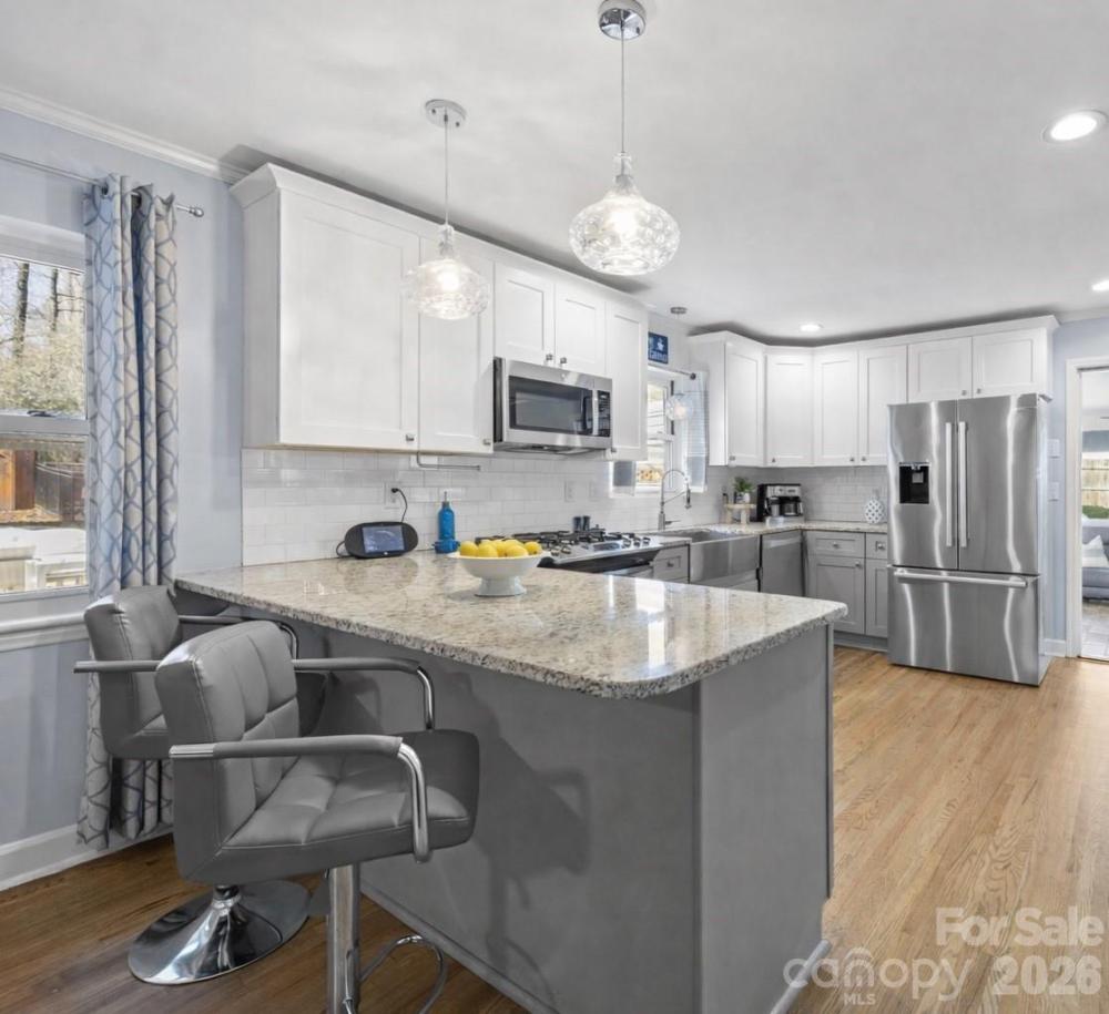 Beautifully updated home with abundant natural light and multiple indoor and outdoor entertaining spaces. Nestled in a peaceful, established Charlotte neighborhood, this lovingly maintained home offers the perfect balance of everyday convenience and private retreat living. Set on a spacious, level lot, this home has an ideal layout for gatherings and everyday living. At the heart of the home, the stunning kitchen blends function and charm with stainless steel appliances, a spacious farmhouse sink, and gorgeous granite countertops. It flows effortlessly into the cozy family room, where a fireplace creates the perfect backdrop for relaxed evenings, holiday mornings, and time spent with the people who matter most. Formal living and dining rooms add elegance and flexibility, featuring fresh paint, refinished hardwood floors, and updated fixtures that give the home a polished yet welcoming feel. The expansive sunroom is a true bonus—ideal as a home office, playroom, fitness space, or even a guest retreat that's flooded with natural light and endless potential. Step outside and discover your own private backyard oasis. Designed for entertaining and unwinding, the outdoor space features an in-ground pool, a built-in outdoor kitchen with a grill and bar seating, and a pergola-covered lounge area. Whether hosting summer gatherings or enjoying a quiet evening swim, this yard was made for making memories. A travertine patio and cozy screened porch add even more space to relax, all surrounded by a flat, fenced yard perfect for play or pets. A detached 2-car garage and extended driveway provide ample parking and storage, while the home’s location keeps you close to shopping, dining, parks, and everything Charlotte has to offer—from Uptown entertainment to neighborhood conveniences just minutes away. If you’ve been searching for a home that offers space, warmth, and standout outdoor living in a location that keeps you connected, 7701 Shady Lane is one you don’t want to miss!