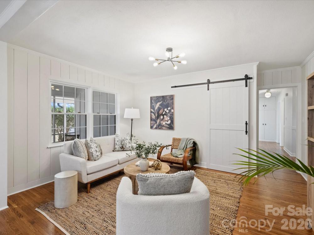 Fantastic move-in ready ranch in hot hot hot Colonial Village! Completely renovated, including all new windows, doors, electrical, plumbing, interior and exterior paint, refinished hardwoods, new bathrooms. This is a gem of a home with spacious living and dining rooms, an en-suite primary bedroom, large kitchen with all new appliances, closet pantry and quartz countertops, a dedicated laundry closet with new stackable Electro-lux washer and dryer. This home lives large with an inviting screened-in back porch and an extra unheated chic shed with windows and electrical for gardening, getaway or storage. This location enjoys proximity to both South End, the airport and the Park Road Shops. Zoned for Myers Park High School. Welcome to Haverhill!