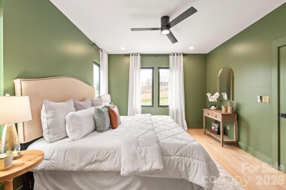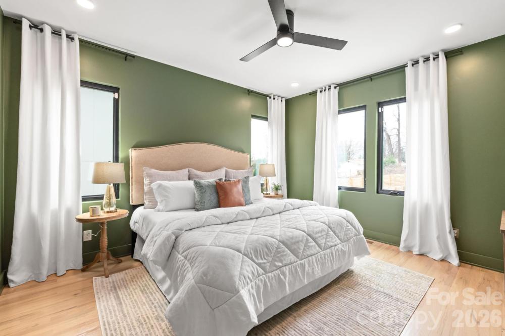 Welcome to 1933 St Paul in the heart of the rapidly growing Lincoln Heights community in Charlotte. Built in 2022, this 4-bedroom, 2.5-bath home offers approximately 2,100 square feet of thoughtfully designed living space with a striking modern front elevation and contemporary finishes throughout. Inside, you’ll find site finished hardwood floors flowing seamlessly across the entire home, complemented by tile flooring in all bathrooms. The open-concept main level is anchored by a beautifully connected kitchen, dining, and living area perfect for entertaining or everyday living. Incredible natural light fills the space, highlighting clean lines and elevated design details. The main level features a spacious primary suite offering comfort and privacy, along with a versatile fourth bedroom ideal for a home office. Upstairs, a generous loft provides flexible living space, accompanied by two additional bedrooms, a full bath, and a dedicated gym area. Situated at the end of a quiet dead-end street, this property offers exceptional privacy and a large, usable backyard with plenty of room to relax, play, or entertain. From the rear second floor windows, enjoy select views of Uptown, adding a subtle urban backdrop to this peaceful setting. Conveniently located with quick access to I-77 and Uptown, this home blends modern design, functional layout, and prime location into one exceptional opportunity.