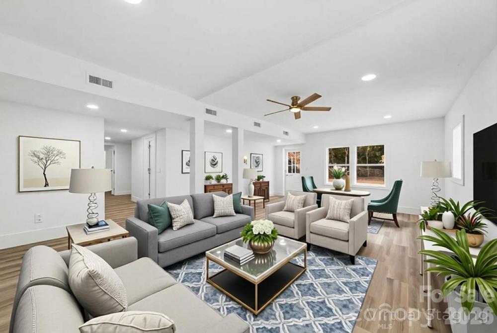 Fully renovated 5-bedroom ranch with finished basement in Charlotte’s highly sought-after Starmount neighborhood, just minutes to SouthPark and the light rail. Completely reimagined, this move-in ready home offers 5 bedrooms, 3 full baths, and a flexible layout rarely found in Starmount. The open floor plan features refinished hardwood floors on the main level and Luxury Vinyl Plank flooring downstairs. The all-new kitchen includes quartz countertops, custom cabinetry, stainless steel appliances with gas range, modern lighting, and a large island ideal for entertaining. The main-level primary suite showcases a double vanity and a custom tiled walk-in shower. Two additional bedrooms and a full bath complete the main level. The fully finished basement provides a spacious second living area, two additional bedrooms, and a full bath—ideal for guests, multi-generational living, or a dedicated home office. Step out to the brand-new deck for seamless indoor-outdoor living. Major upgrades include new roof, HVAC, electrical, plumbing, and completely updated interiors. All renovation permits were pulled, offering peace of mind. Walk to Sugar Creek Greenway and Starclaire Recreation Club, with quick access to SouthPark, South End, Uptown, and NoDa. Five bedrooms, a fully finished basement, and all-new major systems make this a standout offering within Starmount. Some photos are virtually Staged.