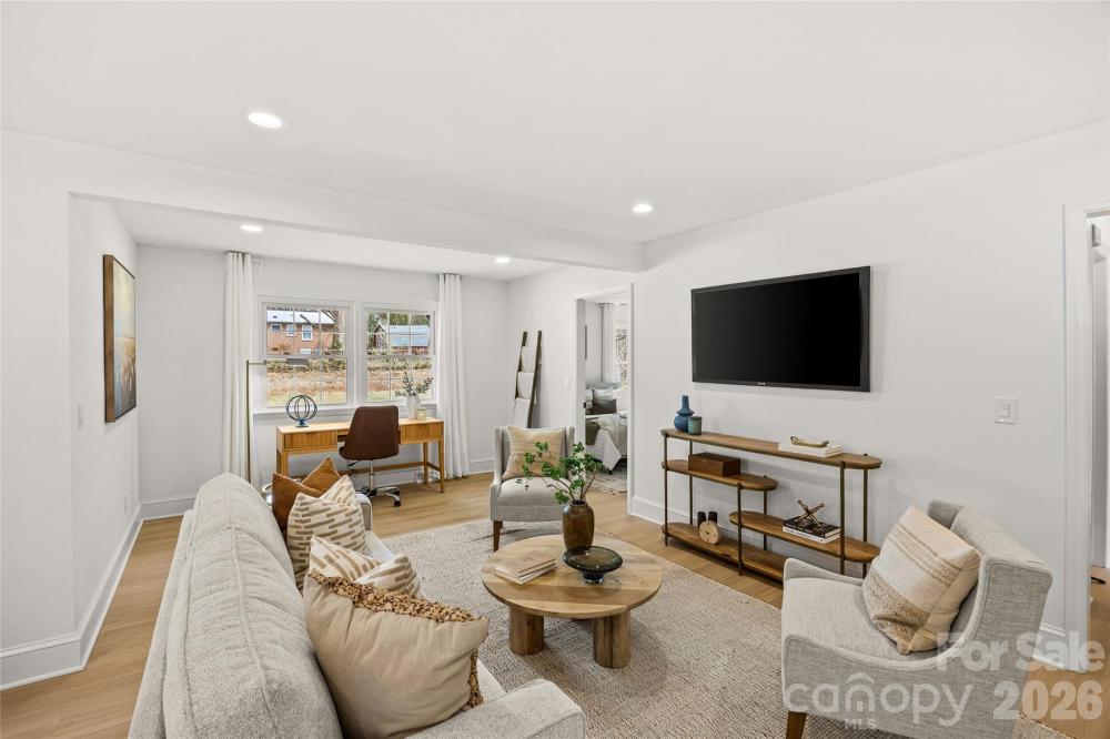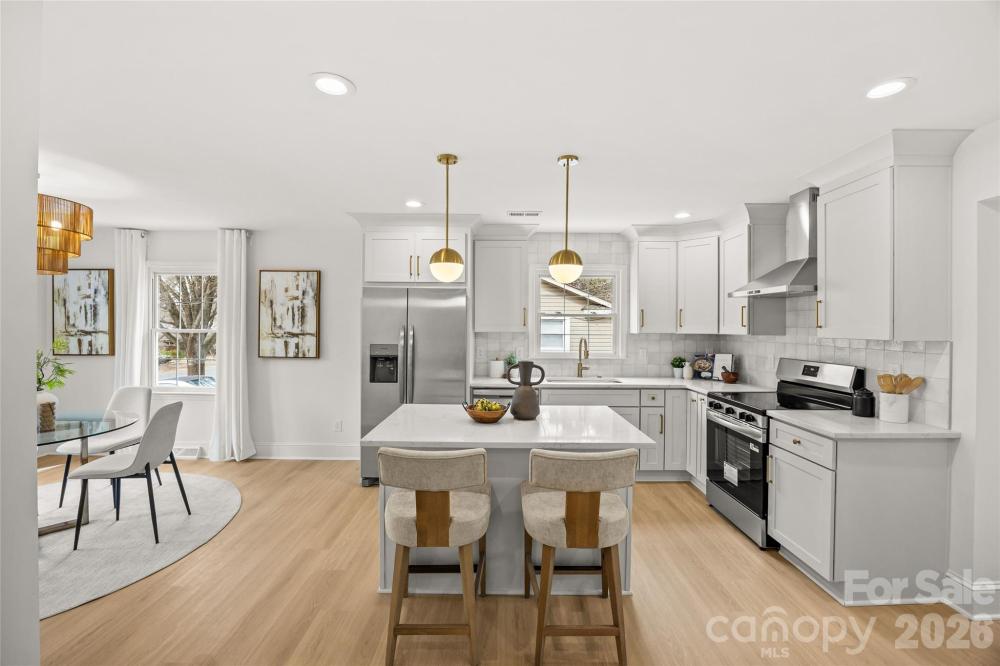WELCOME TO STARMOUNT! Move-in ready, extensively updated ranch featuring new kitchen, bathrooms, cabinets, kitchen appliances, light fixtures, fans, LVP, tile, freshly painted, high-end finishes and design selections such as quartz countertops, and much more. Desirable floorplan for effortless entertaining and everyday living. This three bedroom and two full bath home, situated on .26 acre, boasts a large living room, a show-stopping chef's kitchen open to the family room and spacious dining room off the kitchen. Primary suite features gorgeous ensuite bathroom. Extend entertaining in the large backyard. Easy commute to Uptown, South End and SouthPark. Showings begin 2/27/2026.