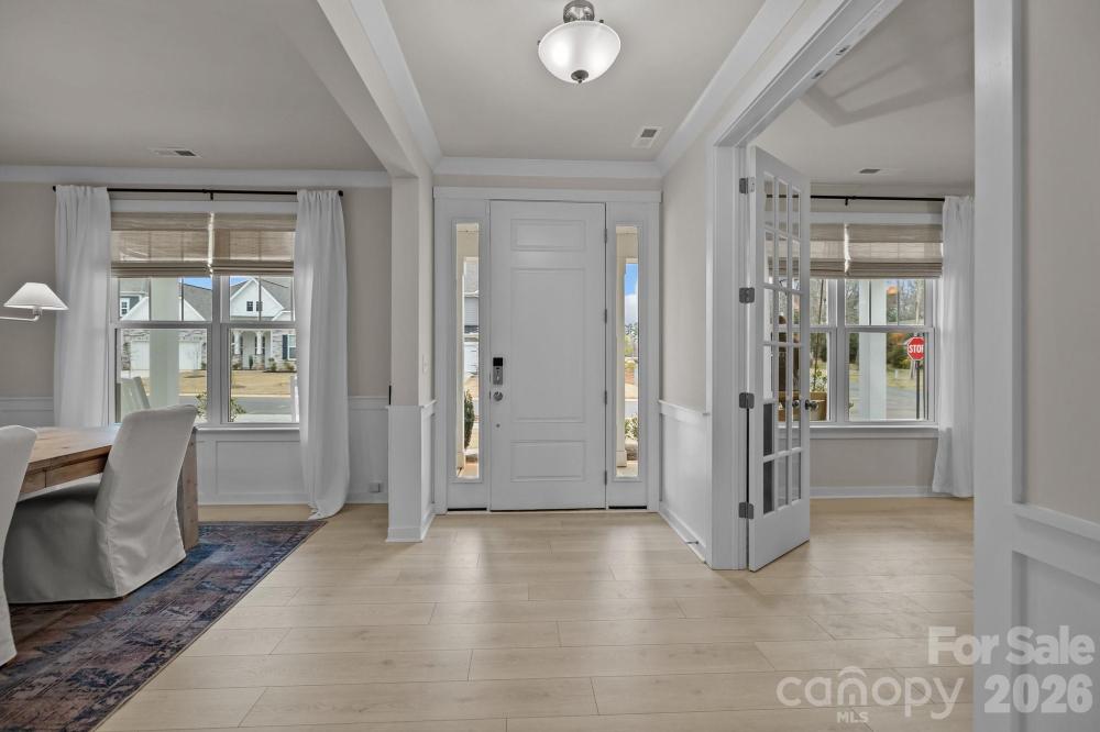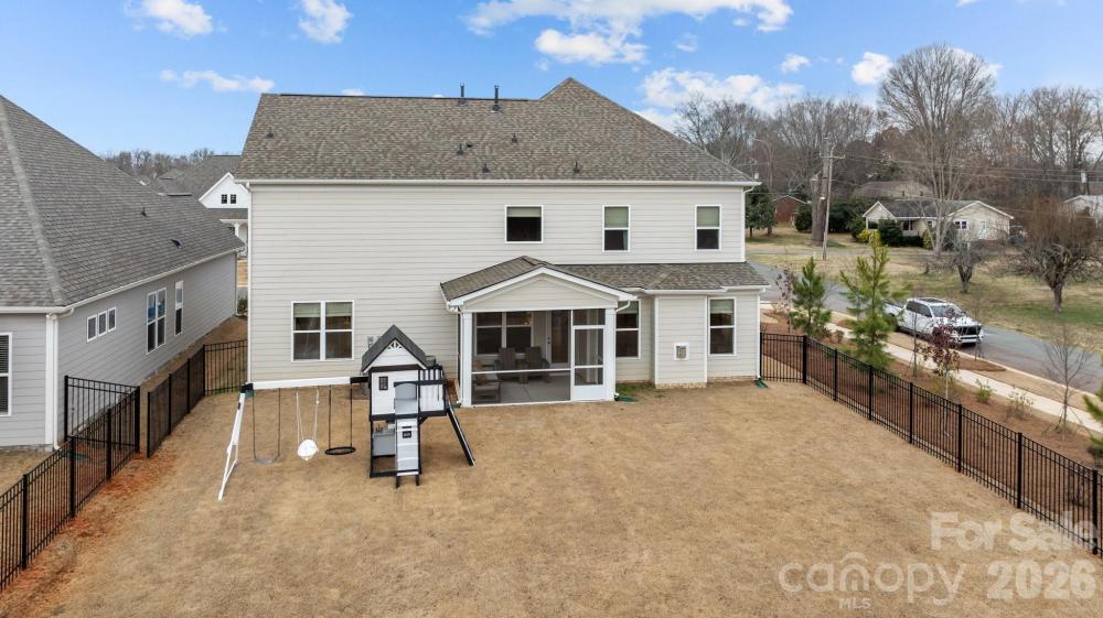 This beautifully maintained home combines modern upgrades with timeless appeal. The bright white chef’s kitchen features stainless steel appliances, a built-in oven, spacious island with seating, under-cabinet lighting, a butler’s pantry, and a walk-in pantry—perfect for everyday living and entertaining. A charming window seat adds character, while durable wood plank flooring flows throughout the main living areas. The spacious primary suite offers dual vanities and a large garden tub, creating a relaxing, spa-like retreat. Stylish pendant lighting, a statement chandelier, and ceiling fans add warmth and comfort throughout the home. Step outside to enjoy a screened porch, fenced backyard, and custom swing—ideal for relaxing or hosting guests. Additional highlights include a breakfast nook, elegant blinds, and a laundry room with folding table for added convenience. Offering preferred lender incentives! Contact agent for preferred lender incentive information. Don’t miss this opportunity to own a beautifully updated home in the desirable Mint Hill area!