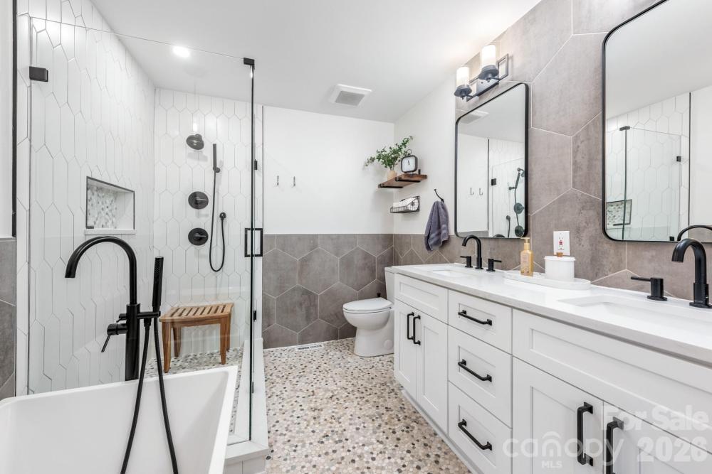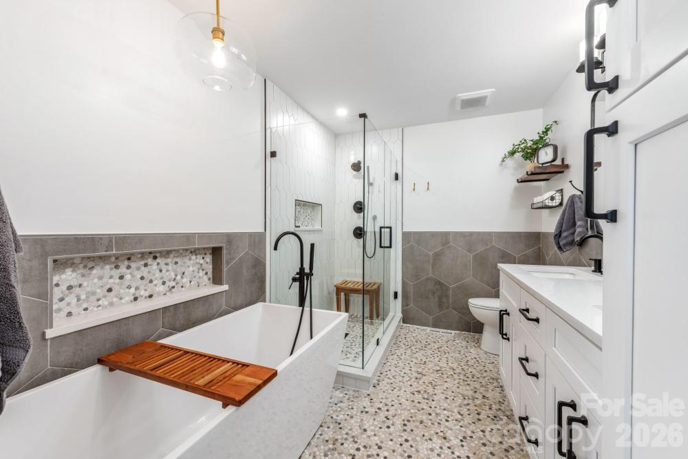 Beautifully renovated and truly move-in ready, this home blends modern upgrades with exceptional outdoor living. Curb appeal shines with a new circular concrete driveway, freshly painted exterior (2020), and professionally landscaped front yard with drip irrigation and annual backflow inspections. Enjoy the inviting front paver patio with propane fire pit, while the fully fenced backyard (6-ft privacy fence) features a new paver patio and fire pit — perfect for entertaining. Inside, the home has been completely updated with new windows, all new interior and exterior doors, new LVP and tile flooring, and a refreshed fireplace with new gas logs. The fully renovated kitchen offers white shaker cabinets with under-cabinet lighting, quartz countertops, a 9.5-foot island, gas range, and all new appliances. Both bathrooms have been fully renovated, with new toilets installed in 2026. Major improvements include a new Carrier HVAC system (2020), tankless water heater, new 200-amp electrical panel, new attic insulation, and a fully insulated crawl space with French drain, sump pump, and dehumidifier system. The garage features a professionally finished epoxy flake floor. Thoughtfully updated inside and out — this home offers comfort, style, and peace of mind for years to come.