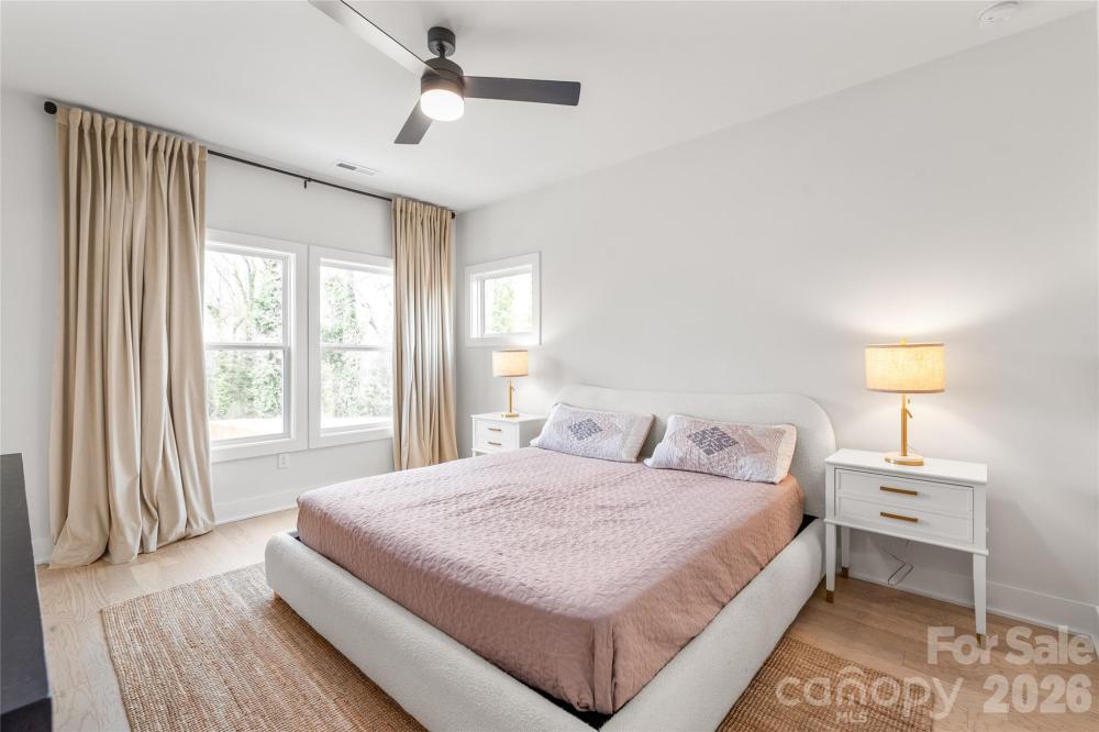 Built in 2022, this beautiful CUSTOM-BUILT modern home is just 15 minutes to DOWNTOWN CHARLOTTE and 10 minutes to NODA & PLAZA MIDWOOD! Offering 4 bedrooms and 3 full baths, the home features an open floor plan with HARDWOOD FLOORING THROUGHOUT and a desirable main-level bedroom with full bath — perfect for guests or a private home office. The GOURMET KITCHEN showcases an impressive 8-FOOT white QUARTZ ISLAND, quartz countertops, ample cabinetry, and a VENT HOOD with exhaust fan VENTED TO THE EXTERIOR — a true chef’s upgrade. The living area flows seamlessly to an extended outdoor patio overlooking a HUGE FENCED BACKYARD, ideal for entertaining and outdoor living. Additional highlights include a TWO-CAR GARAGE with EV CHARGER already installed, MODERN FINISHES throughout, close proximity to shopping and dining — and NO HOA for added flexibility and freedom. Don’t miss out on this rare find! Schedule your showing today!