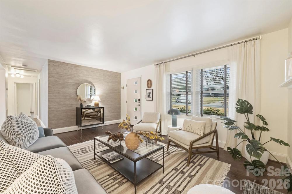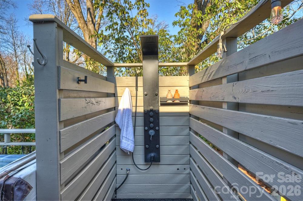 Mid-Century WOW in Country Club Heights! Welcome to your very own Palm Springs-inspired retreat in CLT's booming east side. This 1950s ranch delivers serious mid-century modern vibes with easy one-level living and seamless indoor-outdoor flow. Step outside to 368 square feet of sun-drenched deck space, complete with a hot tub and outdoor shower—for the ultimate resort-style experience. With French doors leading out from both the primary suite and kitchen/dining area, the home opens effortlessly to the deck, inviting in natural light and an open-air feel. Situated on over a quarter-acre lot, this property offers a spacious yard framed by a canopy of mature trees and surrounded by classic atomic-era architecture. Inside, the retro-mod aesthetic truly shines with statement-making features throughout. The custom primary closet system adds both function and flair, while the gourmet kitchen is anchored by a sleek European range, quartz countertops, and a Bosch integrated dishwasher. Grasscloth wallpaper accents and citrus-infused retro tile bring warmth and personality, complemented by coffered ceilings and a tankless water heater for modern efficiency. Major renovation completed by a previous owner, including windows, doors, roof (2015), flooring, kitchen, tile, and a custom closet system. A recent 2026 upgrade includes a brand-new electrical panel, offering additional peace of mind. Additional storage is provided by a 12x8 backyard shed. Country Club Heights remains one of the Plaza area’s favorite neighborhoods and a smart investment, just minutes from everything Plaza Midwood and NoDa have to offer. Swanky. Stylish. Under $550K. Live the mid-century dream!