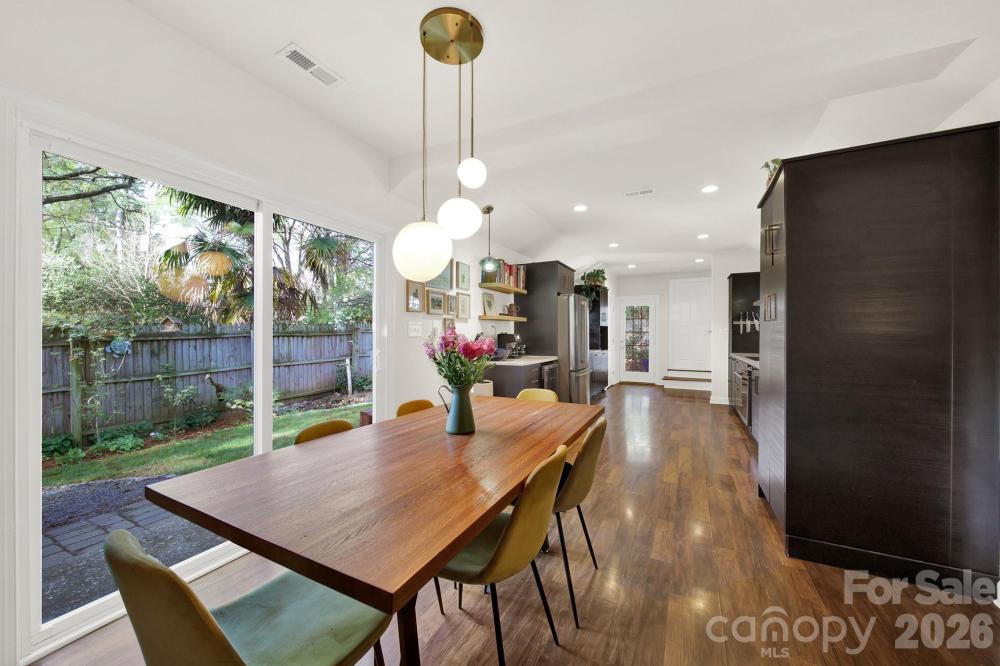Rare find in Plaza Midwood! Nestled on a peaceful, tree-lined street, this charming bungalow is everything you've been searching for! Featuring three spacious bedrooms and two beautiful bathrooms, it’s the perfect home in the most hip suburb of Charlotte. The beautiful hardwoods and stylish lighting fixtures add warmth and sophistication to the dining and living areas. In the kitchen, you'll find sleek stainless steel appliances and ample cabinetry, combining modern style with everyday convenience. Step outside to a delightful outdoor space, perfect for al fresco dining and entertaining guests. The fenced in yard allows for privacy and sanctuary for you and/or your furry friends. Relax by the calming fountain/pond or enjoy walking to your favorite hot spots & the close proximity to Uptown, I77, the airport & more! Don't miss this incredible opportunity to make this stunning home yours!