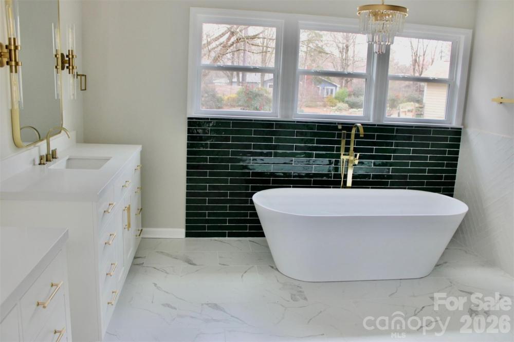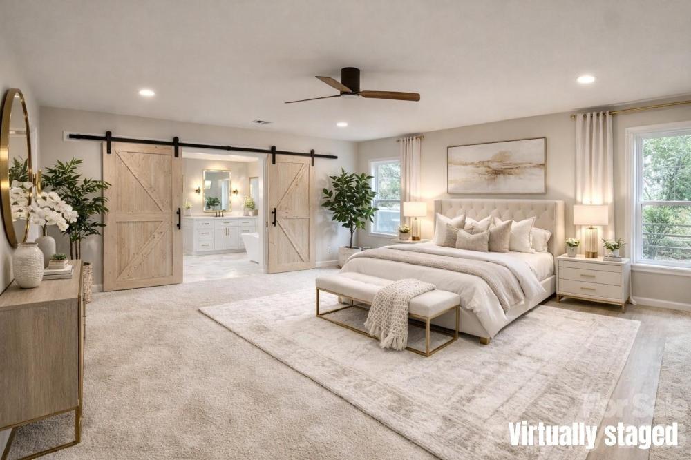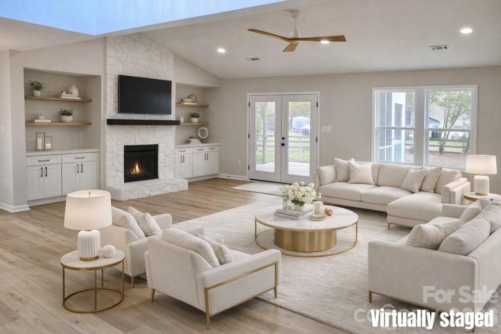 Welcome to this beautifully renovated 4-bedroom, 2-bath home located in the highly desirable 28277 zip code, offering top-rated schools, premier shopping, dining and all the conveniences of Ballantyne - plus easy access to Interstate 485 for effortless commuting. Situated in a quiet cul-de-sac , walk up to an inviting covered front porch with modern updated lighting. Once inside, you’ll find a bright, open-concept layout enhanced by skylights that flood the home with natural light. The spacious living area boasts a gas fireplace, built-in cabinetry and flows seamlessly into a thoughtfully redesigned kitchen featuring luxury finishes, making it ideal for both everyday living and entertaining. The primary suite serves as a private retreat offering comfort and elegance with ample room to unwind along with a luxurious and spacious ensuite. Every detail has been carefully curated in this fabulous renovation! Recent improvements also include a new roof and 2022 HVAC system. Step outside to enjoy the large, level private lot, complete with a serene screened-in patio, expansive deck, and backyard perfect for gatherings or relaxation. Even better - there are no HOA dues, giving you added flexibility and value. Please note: Some photos feature virtual staging to help illustrate the home’s potential.
