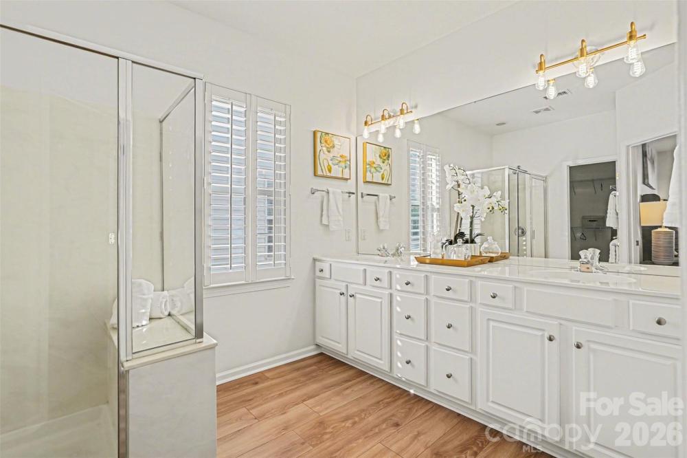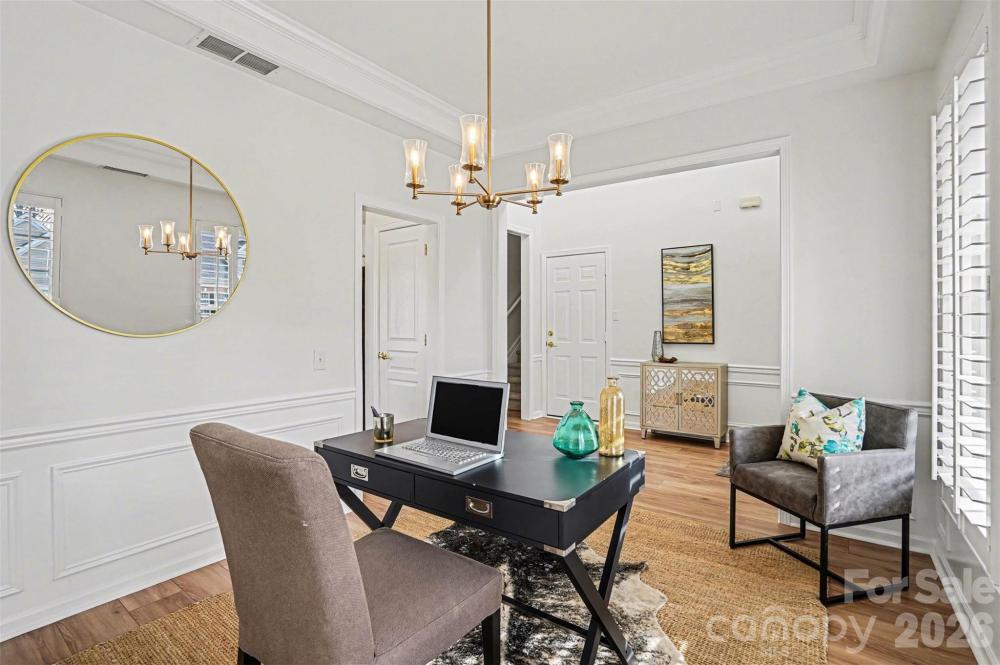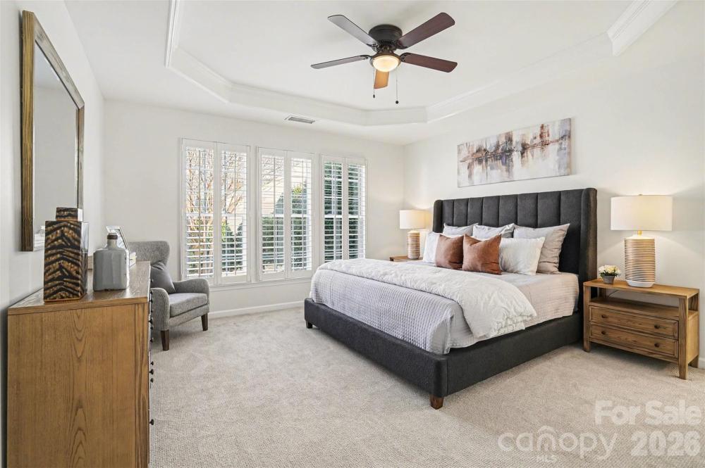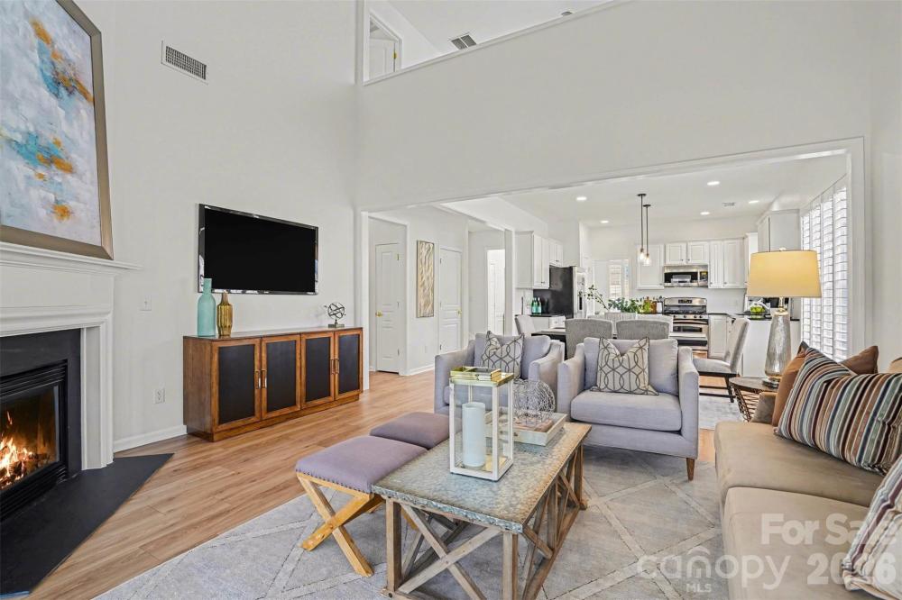 Welcome to Auburn Place! Ideally located near Stonecrest, Blakeney, Rea Farms, and Waverly—with quick access to I-485—this impeccable 3-bedroom, 3-bath patio home offers style, comfort, and convenience. Inside, the vaulted two-story family room opens to a glass-enclosed private porch, creating a bright and inviting living space. The main level features updated flooring and enhanced lighting throughout, along with plantation shutters that add charm and privacy. The kitchen has been refreshed with additional lighting including flush-mount fixtures and pendant lights over the island. Upstairs offers an additional bedroom and full bath along with an oversized loft—ideal for a second living area, office, or guest retreat. New carpet throughout the upper level provides a fresh, comfortable feel. Recent additions throughout and cosmetic updates make this home truly move-in ready. HOA dues provide low-maintenance living and include lawn mowing, edging, lawn and weed treatments, seasonal fall cleanup, and landscaping maintenance, along with plantings and upkeep of neighborhood entrances and shared common areas. Recent Improvements: • New furnace and A/C (2025) • Fresh interior paint throughout (2026) • New flooring on main level (2026) • New carpet upstairs (2026) • Seven flush-mount kitchen lights and two island pendants added (2026) • New lighting and ceiling fans in dining room, bathrooms, primary bedroom and loft (2026) We look forward to your visit!