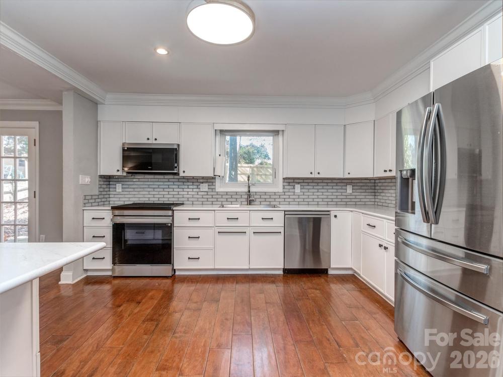 Welcome to one of Charlotte's most desirable communities ...Stonehaven! Beautifully updated home sits on a great corner lot for a little extra breathing room - Full kitchen update with white cabinets, classic subway backsplash, SS appliances & Quartz countertops - Walk in pantry - Open floorplan with tons of natural light - Large dining area - Extended living room and custom bar built ins - Huge family room with wood burning fireplace and vaulted ceilings - Powder room - Laundry on main level - New real hardwood floors upstairs - Updated wood planks on main level - Primary suite with his/her closets & private bath with raised height dual bain vanity and tub - Generous secondary bedrooms/closets - Walk in attic storage - HVAC 2022 - Newer roof - Tankless Hot water heater 2024 - New Anderson windows 2025- 2025 Electrical panel replacement - Fully fenced, private backyard with 6 foot privacy fencing - French doors open to your own peaceful nature habitat - Perfect location in community with easy access to the McAlpine Greenway and the Swim club - No HOA - Minutes from all your day-to-day needs - Convenient commute to anywhere in Charlotte ... Southpark, Uptown, Cotswold, Ballantyne or Matthews - Square feet in home is perfectly laid out for a home that lives so much larger than on paper - Just too much to list! Call anytime for questions or your private tour