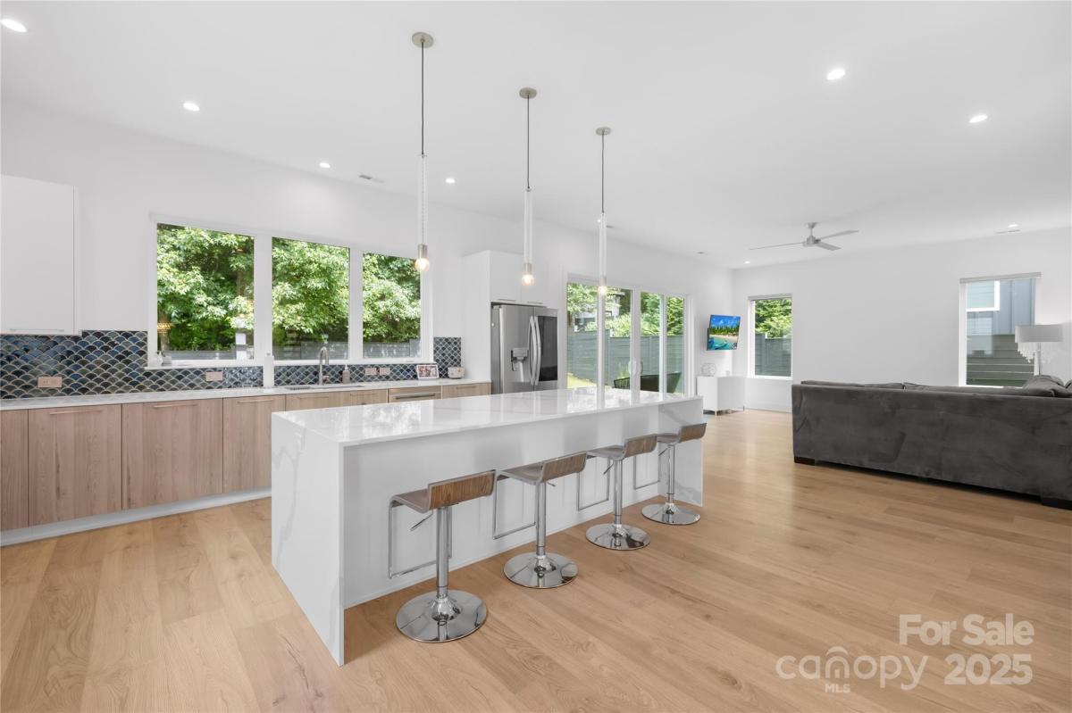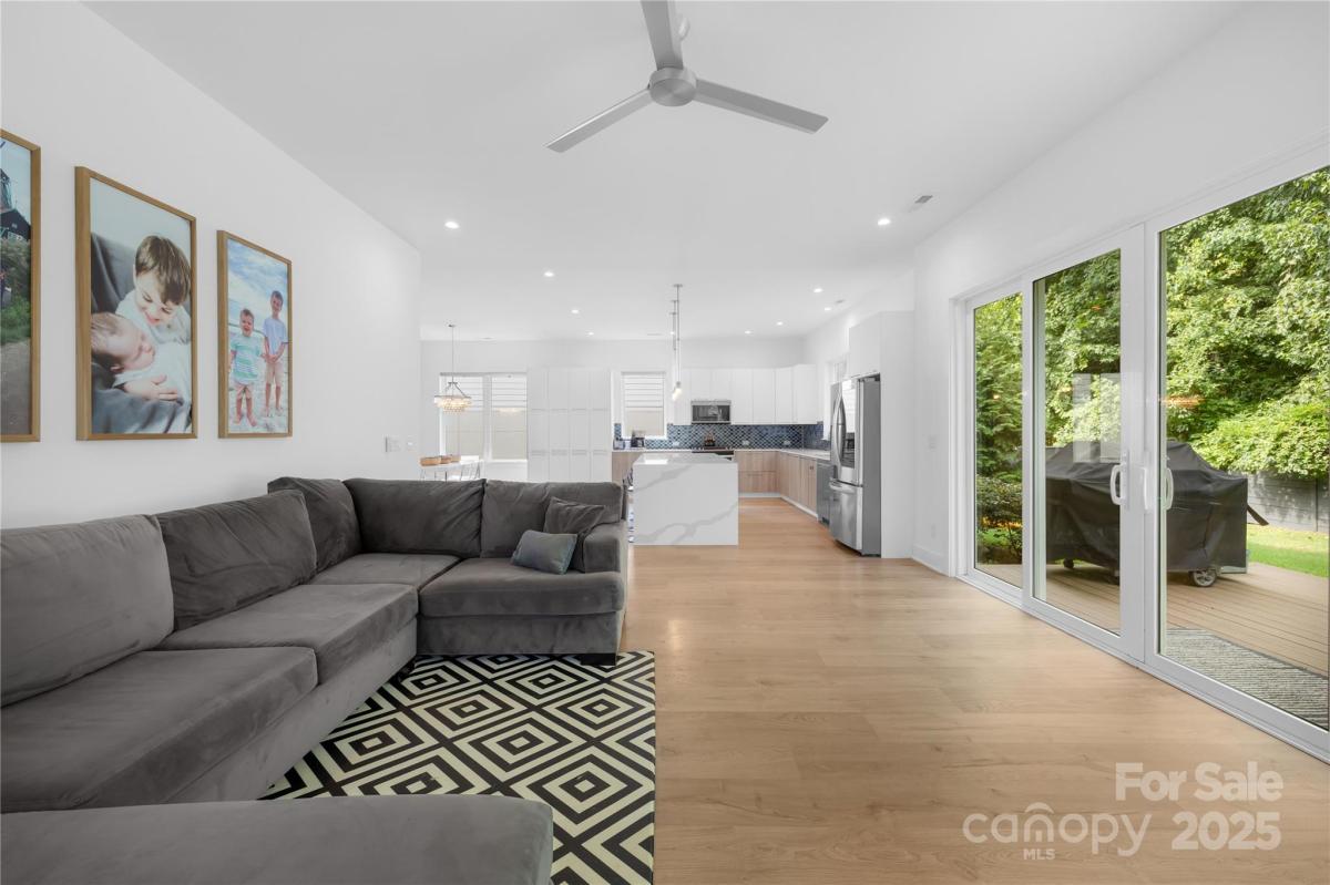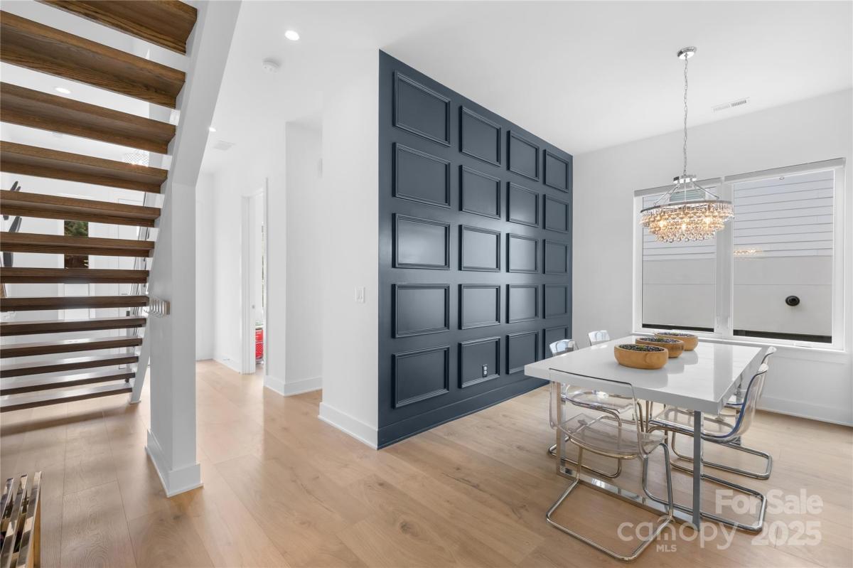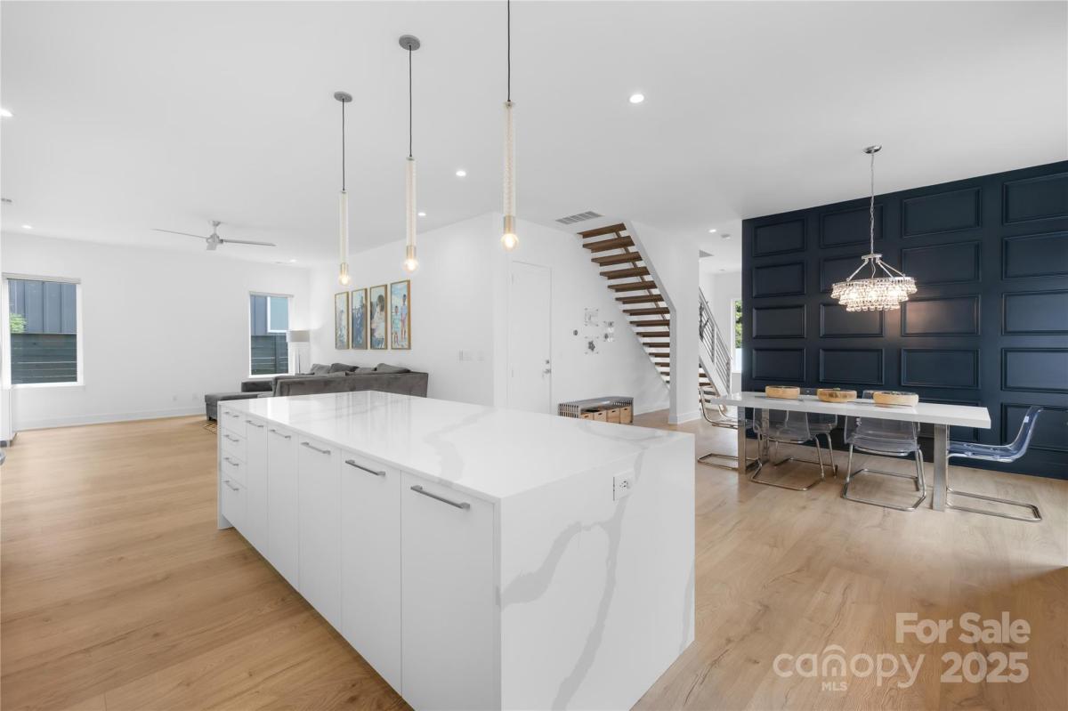 Stunning 4BR/3.5BA contemporary home in one of Charlotte’s most sought-after locations—just a short walk to parks, shops, and dining and uptown! Built with exceptional craftsmanship and eco-conscious details, including a permeable paver driveway. The spacious, fenced backyard offers rare privacy, mature trees, HOA-owned land directly behind ensures no future development. Inside, enjoy a light-filled open floor plan with a dramatic foyer, open staircase, and a flexible office/playroom. The huge chef’s kitchen features European-style cabinetry, a large island, and expansive windows. Upstairs offers 4 spacious bedrooms each with walk-in closets, 3 full baths with floating vanities, and a central laundry room. Modern design meets everyday functionality—don’t miss this one!