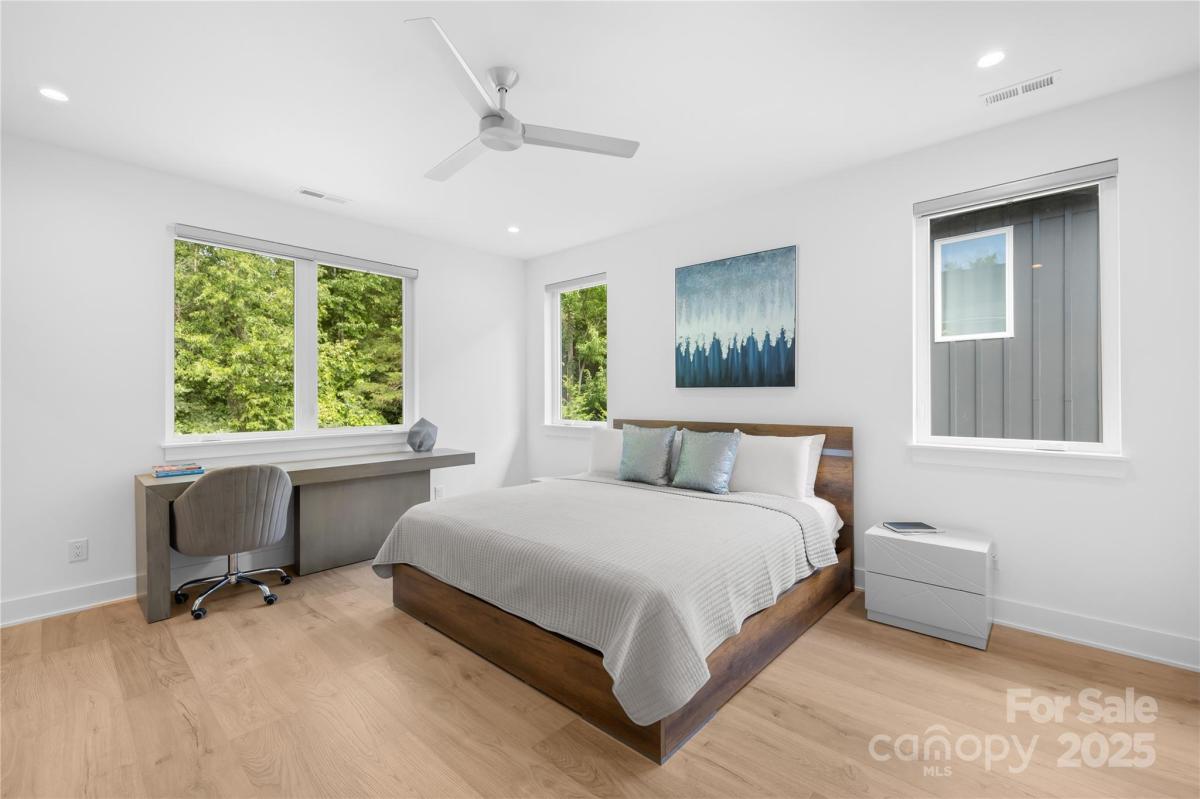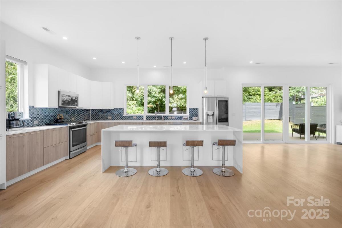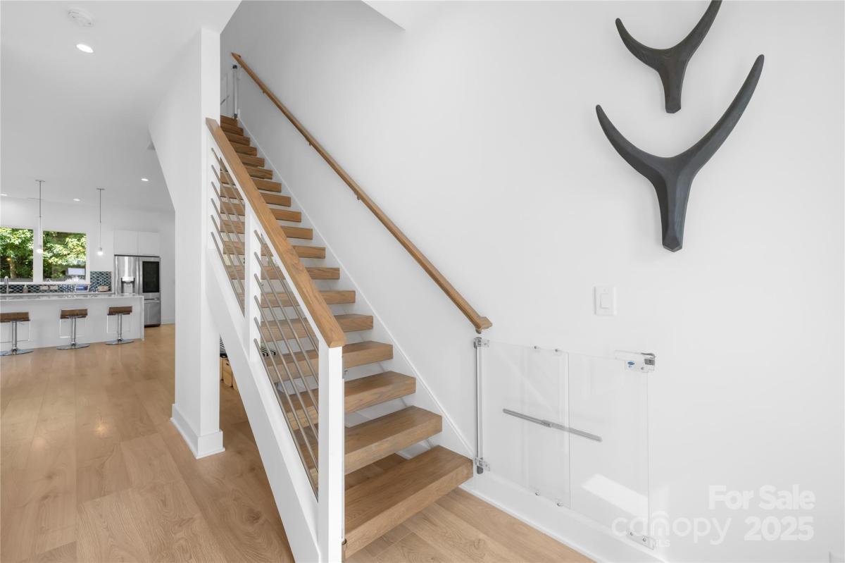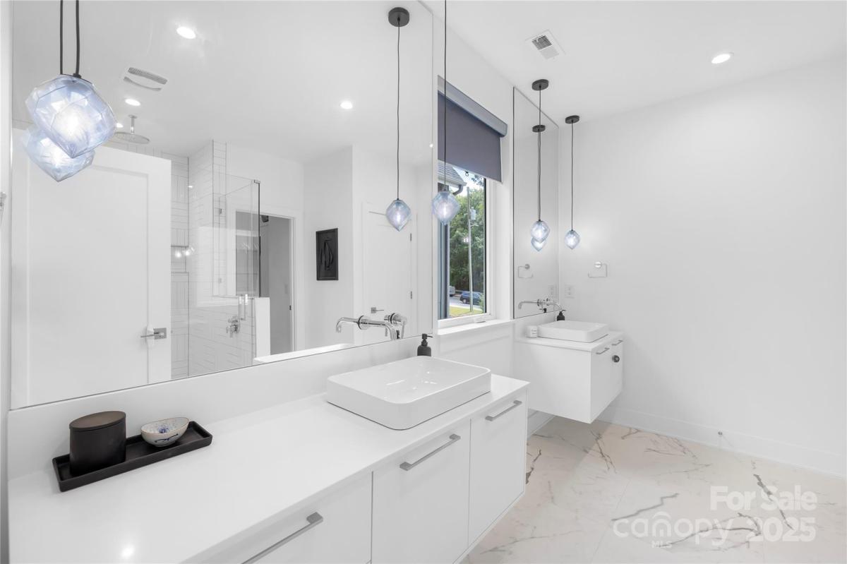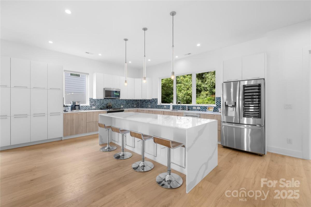 Stunning 4BR/3.5BA contemporary home in one of Charlotte’s most sought-after locations—just a short walk to parks, shops, and dining and uptown! Built with exceptional craftsmanship and eco-conscious details, including a permeable paver driveway. The spacious, fenced backyard offers rare privacy, mature trees, HOA-owned land directly behind ensures no future development. Inside, enjoy a light-filled open floor plan with a dramatic foyer, open staircase, and a flexible office/playroom. The huge chef’s kitchen features European-style cabinetry, a large island, and expansive windows. Upstairs offers 4 spacious bedrooms each with walk-in closets, 3 full baths with floating vanities, and a central laundry room. Modern design meets everyday functionality—don’t miss this one!