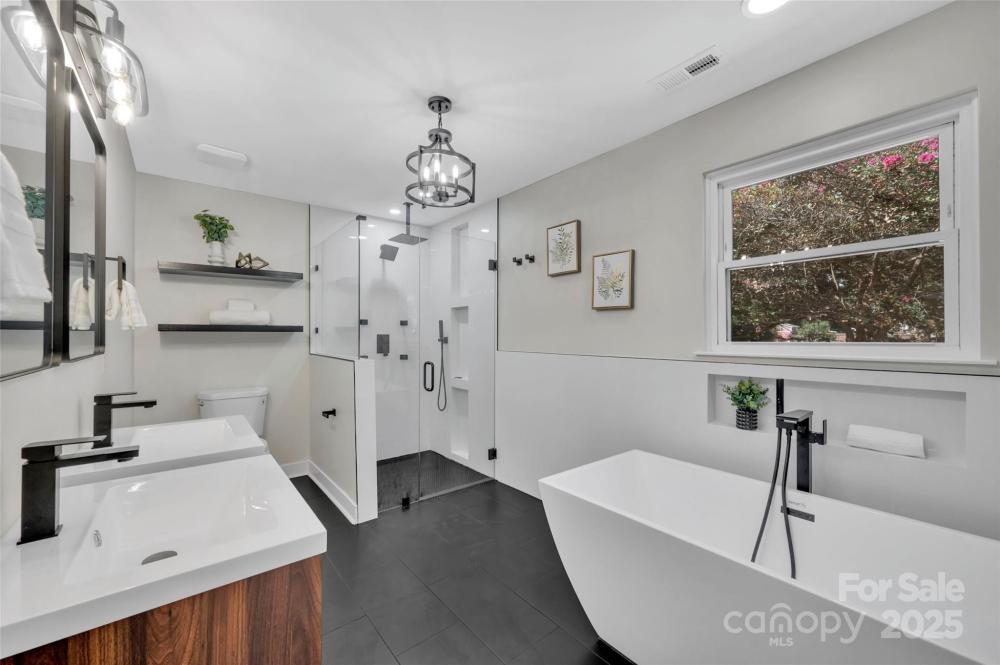 Luxury & thoughtful design make this beauty a perfect retreat in the sought after Plaza/Shamrock area of Charlotte. A spacious living room w/ elegant 10ft high ceilings & a sleek fireplace to ground the space welcome you. This open concept features a gorgeous gourmet kitchen w/ extended hood range, grand island w/ bi-lateral storage, stainless steel appliances, new soft-close cabinetry, & quartz counters throughout. Attention to detail has been made at every corner to offer modern amenities w/ charm, comfort & luxury to include your primary ensuite bath spa retreat w/ a soaking tub w/fireplace feature, and fully tiled wet spaces with massage shower jets & double rainfall shower heads. An ultimate relaxation experience! Designer lighting & flooring fill this 4 bed 2.5 bath oasis in the heart of Charlotte. The large, fully fenced backyard w/all new deck is a perfect bonus to this gem. Better experienced than explained... Welcome home!