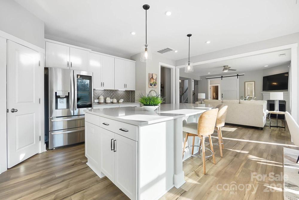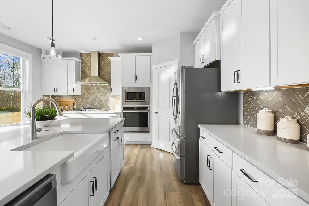You don't want to miss this! Experience resort-style living in The Vineyards on Lake Wylie! This like-new 4-bedroom, 3-bath home by Dan Ryan Homes offers both style and functionality. A welcoming covered front porch opens to wide-plank luxury LVP flooring and a bright, open layout. The main level features a guest suite and full bath and a stunning gourmet kitchen with curved center island, farmhouse sink, walk-in pantry with wood shelving, quartz countertops, decorative tile backsplash, white soft-close cabinetry, stainless steel LG refrigerator, and gas cooktop with vented hood. Upstairs includes a spacious loft, large secondary bedrooms, and a luxurious primary suite with walk-in closet. The home sits on a premier level lot overlooking a peaceful tree-lined nature preserve. Enjoy outdoor living on the oversized covered patio with extended stone pavers—perfect for relaxing or entertaining. Community amenities include two pools, pickleball and tennis courts, dog park, boat & RV storage, kayak and boat launch, and a new pool house under construction. Conveniently located minutes from the airport, Uptown Charlotte, the Whitewater Center, and downtown Belmont’s shops and dining. Welcome Home!