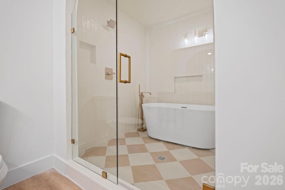 This home is a statement in design, scale, and location. Professionally curated from top to bottom, this home showcases elevated finishes and architectural detail throughout, with striking archways that define the main level and create a dramatic yet seamless flow—an entertainer’s dream in every sense. The main floor is designed for both grand hosting and everyday living. The open concept flows seamlessly from the kitchen to the main living area with abundant natural light. The kitchen features stunning quartz countertops, a waterfall island, custom cabinetry, and brand-new stainless steel appliances. If you were not already blown away by the renovated kitchen and gorgeous arches, then the primary bedroom will take you over the top! The dream-worthy primary suite offers a true retreat featuring a one-of-a-kind walk-in closet and an en-suite bath that feels straight out of a design magazine. It features a custom arched glass door, soaking tub, and elegant tile. With 4 bedrooms and 3 full baths, the home provides exceptional flexibility, including a dedicated guest suite and a secondary living space on the lower level—ideal for extended stays, work-from-home living, and private relaxation. The future homeowner will have peace of mind with a new roof (2025), new HVAC systems (2025), new water heater (2025), new windows (2025), fresh exterior and interior paint, updated plumbing and electric. A large driveway leads to a rare two-car garage, a true luxury in this area. Just steps from Park Road Shopping Center and surrounded by new luxury development, this location offers walkability, convenience, and long-term desirability. A savvy homebuyer has the perfect opportunity to have an income-producing rental of the lower level with a separate entrance/exit. This is not just a home—it’s a refined lifestyle opportunity in one of Charlotte’s most coveted locations.