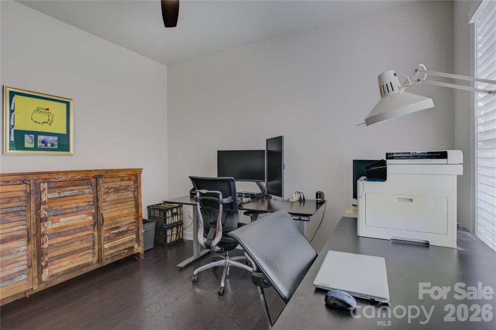 This beautifully designed 1½-story ranch offers a full, unfinished walk-out basement and a versatile layout ideal for everyday living and future expansion. Just off the foyer, a private office with French doors creates a quiet workspace, and the formal dining room is accented by elegant decorative wainscoting. The kitchen features a large granite prep island, Skyline cabinetry, a gas cooktop, and a wall oven, and it opens seamlessly to the great room with a cozy gas fireplace. A sunny breakfast area leads to the screened-in balcony—perfect for enjoying the seasons. The primary suite is privately tucked at the rear of the home and features dual vanities, a glass-enclosed shower, and a spacious walk-in closet. Two secondary bedrooms share a hall bath. Upstairs, an open loft connects to a fourth bedroom with a private bath, plus generous walk-in attic storage. Downstairs, the unfinished walk-out basement offers significant potential, with plumbing already in place for a fourth full bath, a fifth bedroom, a large recreation room, and even a second kitchen. Ideally located within an easy walk to the residents’ clubhouse and pool, this home blends comfort, flexibility, and opportunity.
