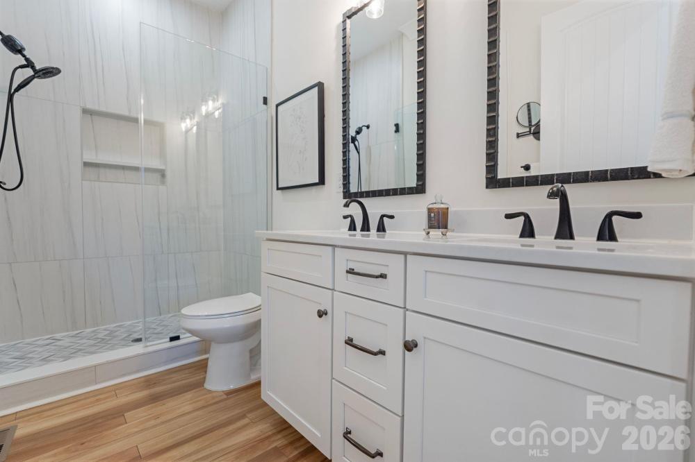 Exceptional craftsmanship and custom design finishes define this beautifully appointed home; set on a private half-acre lot with no HOA, offering the perfect escape from busy city living. A spacious covered front porch welcomes you in, while the screened rear porch creates an ideal setting for quiet mornings, relaxed evenings, or effortless entertaining surrounded by space and privacy. Premium laminate wood flooring begins at the double-door entry and flows throughout the main level. The open-concept floor plan centers around a stunning living area with gas fireplace, seamlessly connecting to the dining space and designer kitchen. Quartz countertops, a herringbone tile backsplash, KitchenAid appliances, a generous island with seating, and a walk-in pantry complete with appliance counter make this kitchen both functional and refined. The primary suite is conveniently located on the main level and features board-and-batten detailing, a beautifully crafted bath, and a spacious walk-in closet. A thoughtfully designed service hall includes a laundry area, powder room, drop zone, and access to the rear porch and oversized double garage. Upstairs, two secondary bedrooms offer walk-in closets (one with a private bath) while the hall bath serves the fourth bedroom and versatile upper-level spaces including a rec room & dedicated office area. With generous outdoor space, freedom from HOA restrictions, and a layout designed for both comfort and entertaining, this home delivers privacy, flexibility, and everyday livability - all while remaining convenient to the city when you need it.