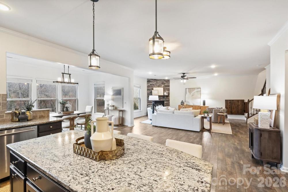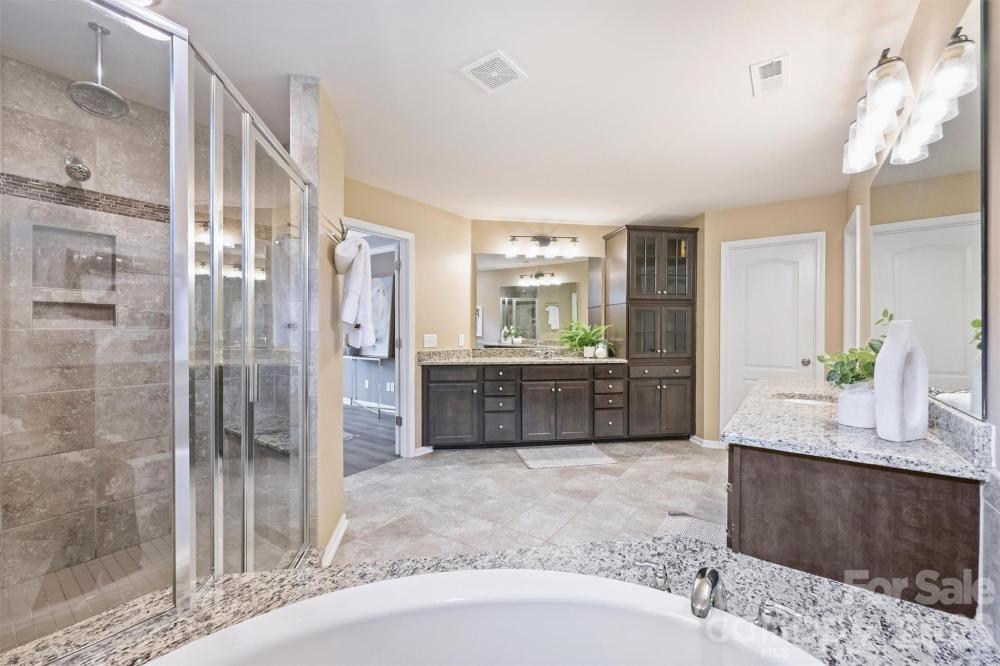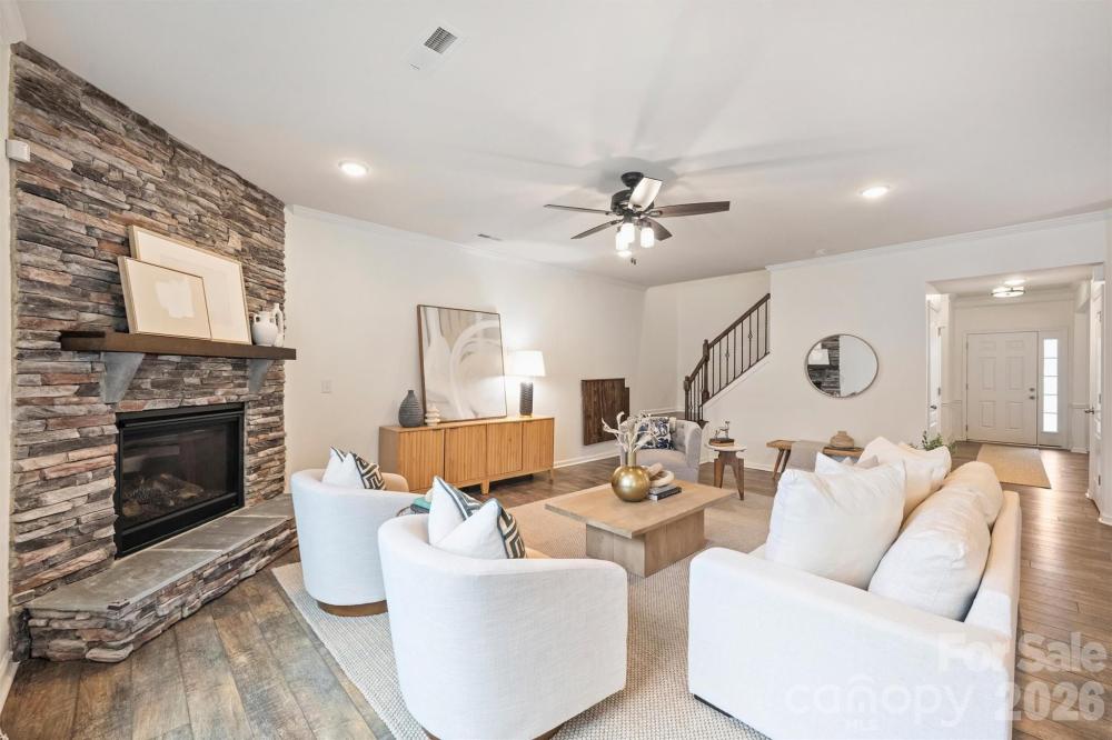 RARE FINISHED BASEMENT WITH EXPANSIVE REC ROOM, EXERCISE ROOM, AND GUEST SUITE! This beautifully maintained home in sought-after Chapel Cove offers over 4,300 square feet of thoughtfully finished space, including a basement level designed for the way today’s buyers want to live and entertain. The spacious rec room easily accommodates a full sitting area with TV plus a pool table, ping pong table, or game space — with room to spare for an arcade game, built-in bar, or future kitchenette. Just off the rec room, a dedicated exercise room easily fits weights and multiple machines such as a treadmill, elliptical, or stair climber. The lower level also includes a private bedroom and full bath, creating the perfect setup for guests, extended family, an au pair, or a comfortable in-law suite. Storage is abundant throughout the home. The garage features a tandem storage bay, ideal for extra storage or a golf cart to explore the neighborhood, while the basement includes a large additional storage room. On the main level, attention to detail continues with hardwood floors throughout, a dedicated office with glass doors, and elegant tray ceilings in the dining room. Designed for everyday living and effortless entertaining, the chef’s kitchen features a large gathering island, butler’s pantry, and seamless flow into the light-filled family room anchored by a gas log fireplace. A sunroom just off the kitchen provides flexible space for casual dining or relaxing, while the mudroom with a built-in computer niche helps keep daily life organized. Upstairs, every bedroom includes a walk-in closet, including dual closets in the spacious primary suite. A versatile loft at the top of the stairs offers endless possibilities — a second office, playroom, den, or media space. Outdoor living is equally inviting. Enjoy sunrise mornings on the rocking chair front porch and unwind at sunset overlooking the wooded backdrop from the back deck beneath the retractable awning. The fully fenced backyard features an expanded paver patio and added stairs for easy access from deck to yard. Located in highly desirable Chapel Cove, residents enjoy resort-style amenities including a clubhouse, pool, pickleball and tennis courts, sport court, playground, walking trails, fitness center, and paddlesport launch area — plus convenient access to Lake Wylie with nearby dry and wet dock storage, all while maintaining an easy commute to Uptown Charlotte. Homes rarely offer this level of finished space, flexibility, and amenities — creating a unique opportunity for buyers who want room to live, entertain, and relax without compromise.