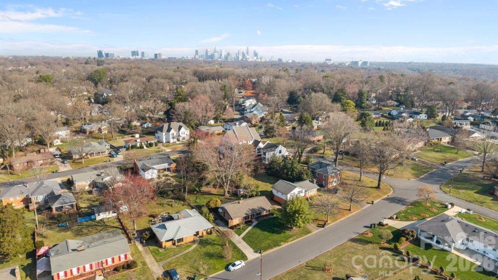 Nestled in one of South Charlotte’s hottest in-town neighborhoods, Ashbrook, this classic 1950’s brick ranch with warm wood accents offers timeless mid-century modern appeal on a prime .26-acre lot. With 1,522 square feet, 3 bedrooms, and 2 bathrooms, the home blends character, charm, and opportunity. Inside, you’ll find original parquet floors, an open floor plan, and a stunning wood-burning center fireplace framed by a brick accent wall — the true heart of the home. Expansive windows fill the living spaces with natural light, creating an airy, inviting atmosphere that highlights the home’s architectural character. Step outside to a covered patio overlooking the backyard — perfect for entertaining, relaxing, or expanding. Approximately 78 feet of road frontage enhances the lot’s versatility for those considering a new build. Whether you envision thoughtfully modernizing this mid-century gem or starting fresh with a custom new build, the possibilities are exceptional. Ashbrook continues to see significant redevelopment, with new construction homes reselling for $3,000,000+ — making this property an outstanding investment opportunity in a premier location.