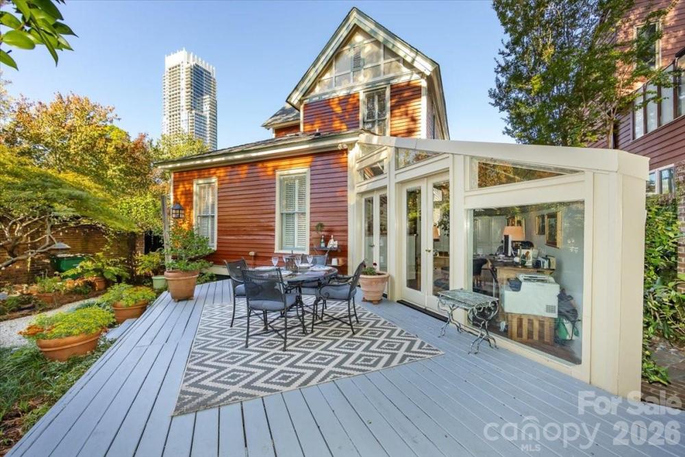 Step into one of Uptown Charlotte’s most storied and admired residences. The iconic “Bootlegger House” is a rare opportunity to own a landmark property rich in character, history, and architectural charm. Built in 1894, this enchanting Eastlake Victorian has been lovingly preserved and thoughtfully modernized by its current owners. Its storybook façade, intricate millwork, and period details blend effortlessly with high-end updates for today’s lifestyle. A Storied Past During Prohibition, the home earned its nickname as a discreet destination for black-market liquor—cleverly hidden in a secret compartment in the foyer, still intact today. Its legacy has made it a beloved local treasure. Featured & Celebrated, this home and its lush gardens have been showcased on: • Mint Museum Home & Garden Tour • Wing Haven Garden Tour • Fourth Ward Secret Gardens Tour • Fourth Ward Christmas Tour • Cover feature of Our State Magazine • Charlotte Convention & Visitors Guide Unmatched Location & Views perfectly positioned on a prominent corner lot, the property offers rare, unobstructed city-skyline views—dramatic by day and dazzling by night. Located in the heart of Fourth Ward, the home is an effortless walk to Charlotte’s best dining, theaters, parks, museums, and nightlife. Thoughtfully Updated for the Future. The current owners have sized the upstairs HVAC to support a future second-floor addition over the rear dining room and kitchen, offering flexibility for expansion while preserving the home’s architectural integrity. Highlights include: Historic Eastlake Victorian architecture, Original period details + modern updates, Secret bootlegger compartment from the Prohibition era, Premier corner lot with skyline views, Gardens featured on multiple prestigious tours. Walkable to everything Uptown has to offer!