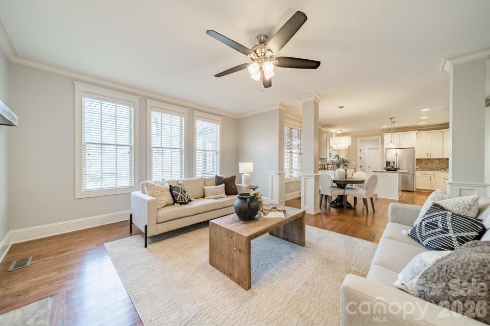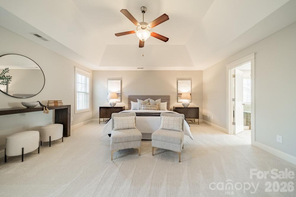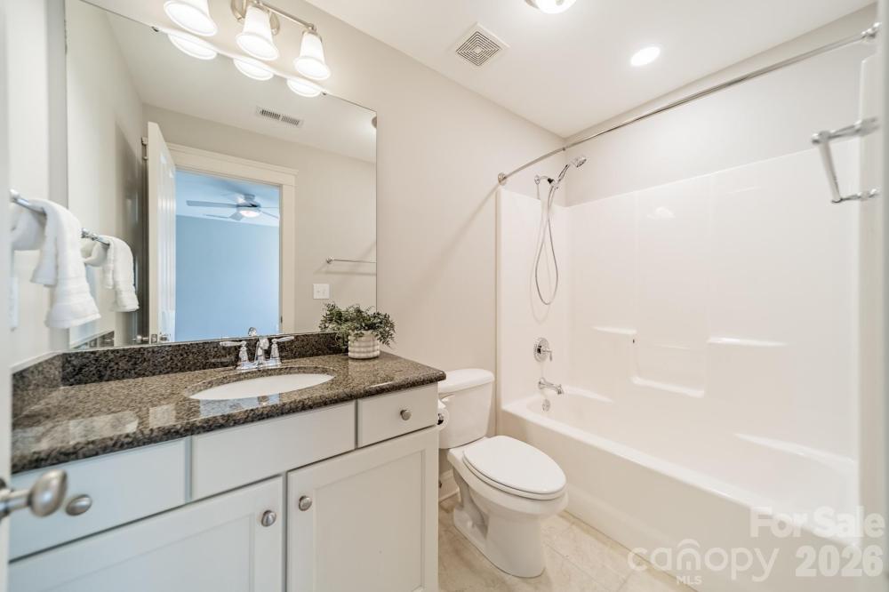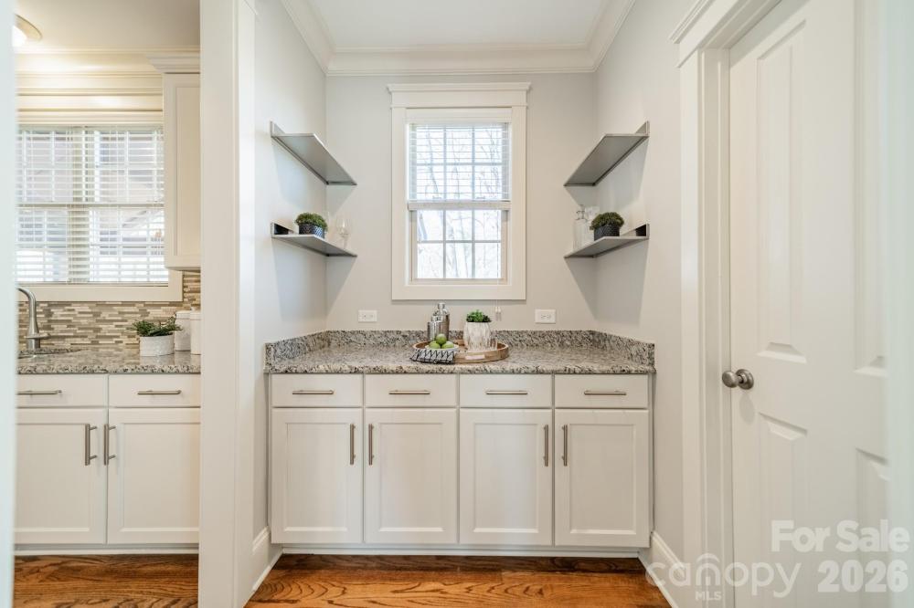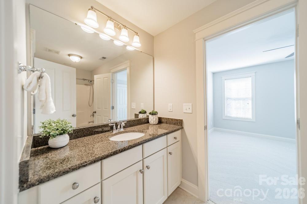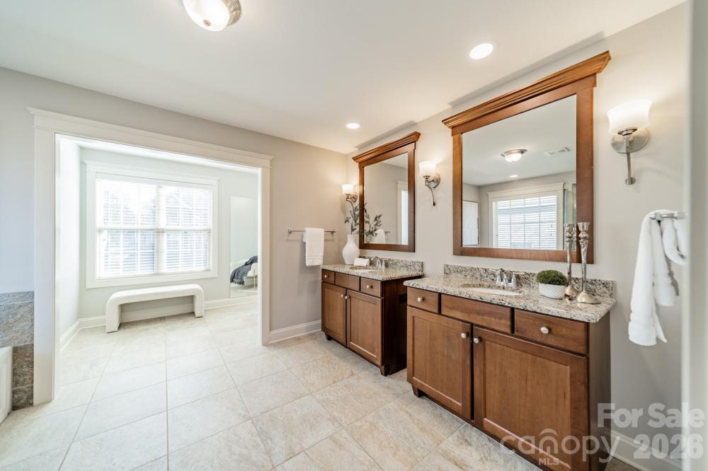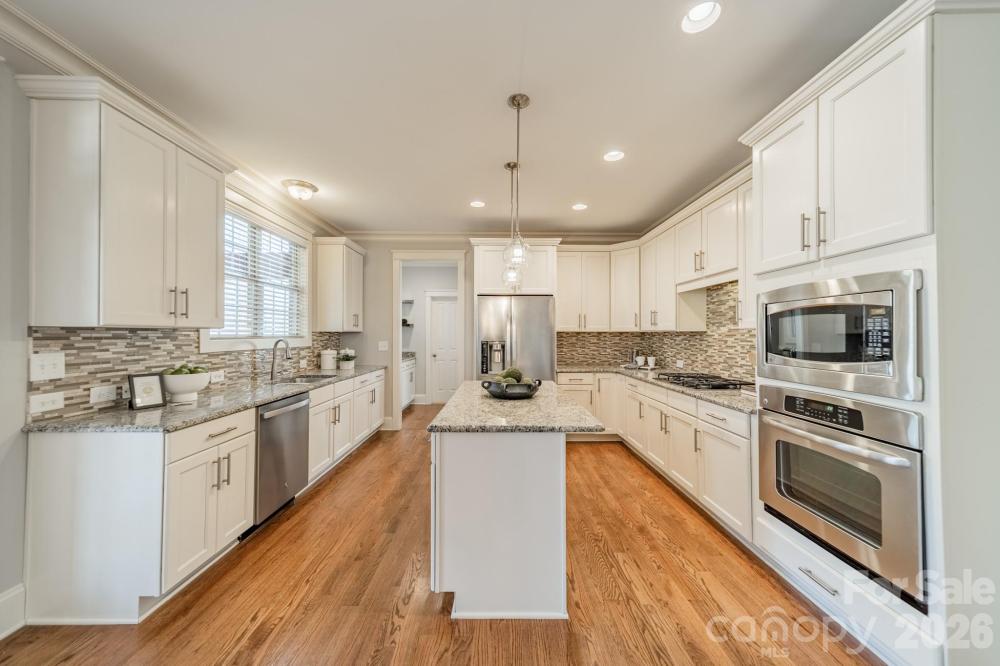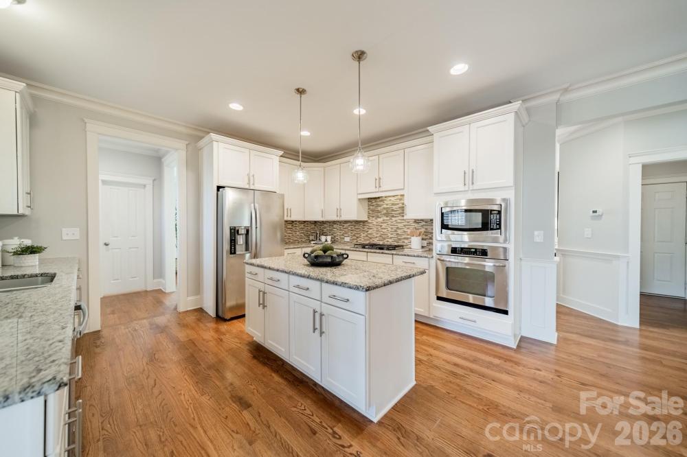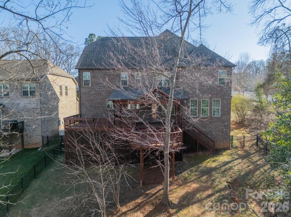 In the heart of South Charlotte’s established Brackenbury Terrace community, this custom-built brick and stone residence by James Custom Homes offers generous living spaces and everyday convenience in a thoughtfully designed open floor plan. A dramatic two-story foyer introduces the main level, which includes a formal dining room with adjoining parlor, spacious great room with gas log fireplace and seamless connection to the open kitchen and breakfast area. The kitchen features a large granite island, gas range with convection oven, butler’s pantry and walk-in pantry, providing both function and flow. A mudroom with garage entry enhances everyday organization. The main-level guest bedroom and full bath offer flexibility for visitors or multigenerational living. Outdoor living extends to a covered two-tier rear deck overlooking a fenced backyard, offering generous space to relax or host guests. Hardwood floors span the primary living areas, complemented by new carpet and fresh interior paint. This home is move-in-ready. Upstairs, the primary suite features a vaulted ceiling and en-suite bath with separate shower, soaking tub, dressing area and large walk-in closet. Two additional bedrooms, each with a full bath, ensure comfort and privacy. A private office with French doors and gas log fireplace offers versatility as a library, nursery or sitting room. The expansive bonus room with high ceilings and walk-in closet provides versatile space for recreation, media or additional living. Additional highlights include custom moldings, iron railing, a two-car garage and the added security of a full-house generator. Ideally located with convenient access to nearby shopping, dining and everyday amenities in South Charlotte!