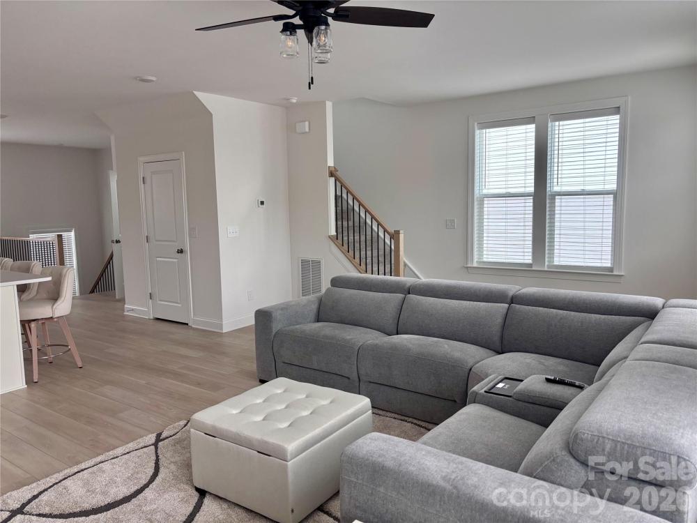 Rare opportunity for never lived in new construction townhome! Located in the desirable Cox Mill school district, this end unit townhouse has a desirable east-west location, allowing for amazing natural light throughout the day. Located in the Christenbury Green subdivision, the townhouse backs up to the walking trail and community playground. The townhouse has been extensively upgraded, including upgraded carpet and railings throughout. The kitchen includes beautiful quartz countertops and a brand new refrigerator/freezer. All bathrooms includes upgraded countertops, flooring, fixtures, and shower tile. Master bedroom contains 2 walk in closets. Garage has been finished/painted and includes an EV charging outlet. Don't miss out on the opportunity to live in a beautifully upgraded new townhouse in a prime location, without the hassle of having to build!
