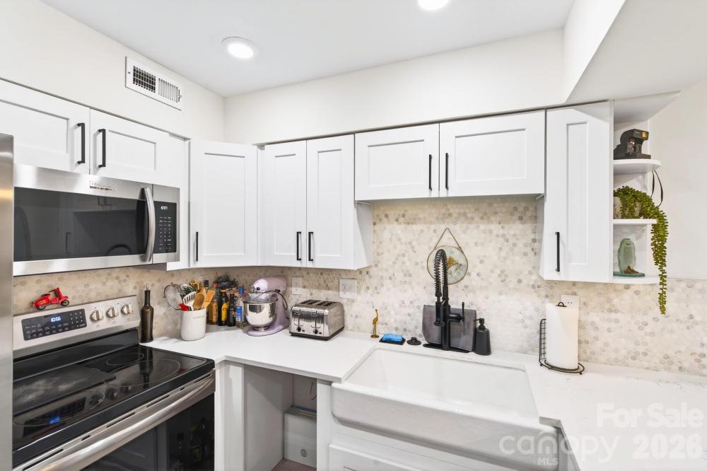 Welcome home to Locke Mill Plaza—a character-rich, historic mill conversion with a modern edge, just minutes to the energy of Downtown Concord. This 2-bedroom, 1-bath condo blends timeless charm with the upgrades that matter: fresh interior paint, new LVP flooring in the bedrooms, and a water heater (~2 years old). Plus, the sellers will be adding new blinds in both bedrooms before closing. The kitchen is the star here—bright, clean, and confidently updated with white shaker cabinetry, matte black hardware, stainless appliances, a statement apron-front sink, and a soft neutral mosaic backsplash that ties everything together. And the hookup and plumbing are already in place for a dishwasher, making it easy to add one if you want. The open flow into the living area makes it perfect for entertaining, relaxing, or keeping your everyday routine feeling simple and connected. Both bedrooms are set up to feel like true retreats, with new LVP flooring for a fresh, cohesive look. The primary bedroom offers a comfortable space to unwind, while the second bedroom gives you options: use it as a traditional bedroom, a guest suite, a dedicated home office, a workout/yoga room, a nursery, or a hobby/creative space—whatever fits your lifestyle right now. The bathroom continues the clean, refreshed feel with bright finishes that keep the space feeling polished and crisp. You’ll also love the convenience of the in-unit laundry closet, keeping everything you need right at home. Beyond the unit, Locke Mill Plaza delivers community perks that make daily life even better: enjoy sunny weekends at the community pool, take advantage of the picnic area for grilling or gathering with friends, and appreciate the added peace of mind with gated parking plus controlled/gated building access. And the location is the real win: you’re minutes from Downtown Concord’s restaurants, breweries, coffee shops, parks, and year-round events. Whether you’re grabbing dinner, meeting friends for brunch, or heading out for a festival, this home supports a walkable, lock-and-leave lifestyle—historic character, modern upgrades, and downtown convenience all in one.