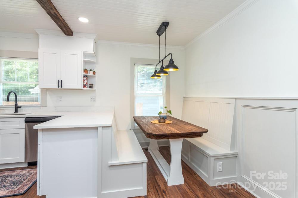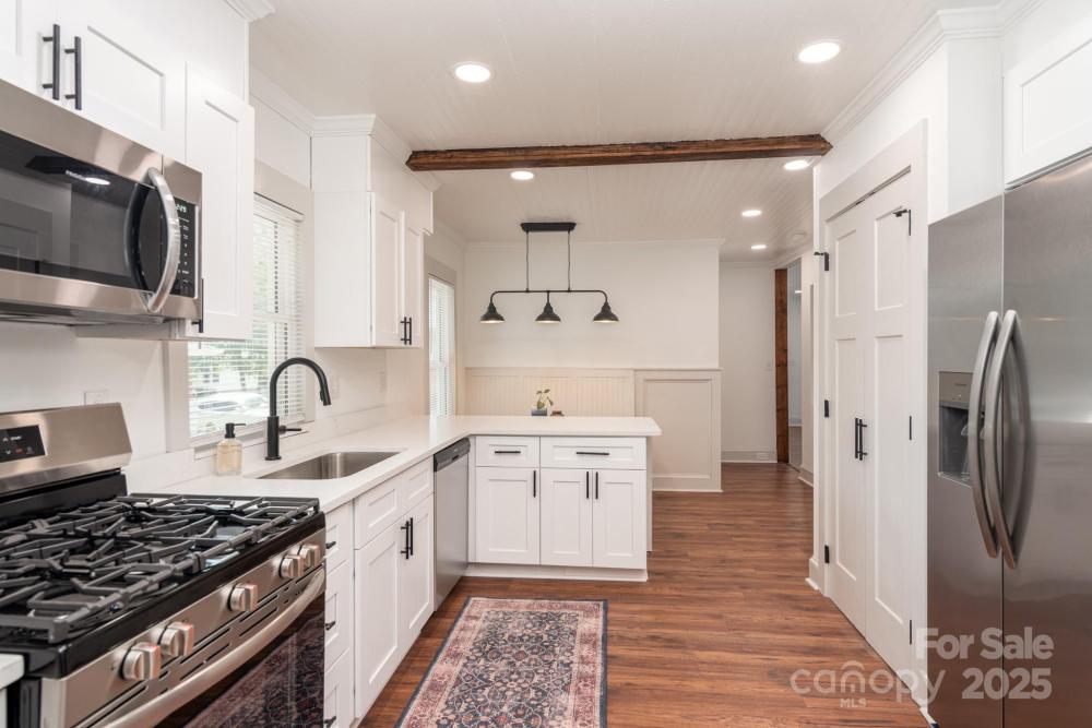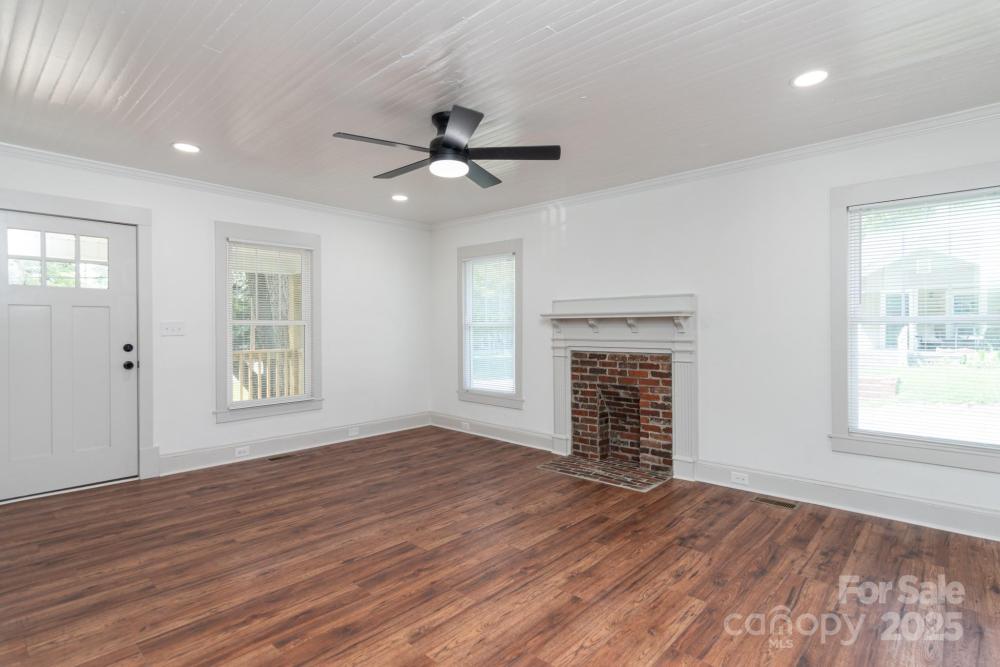 Fall in love with a home that has both history and heart—restored with care by a family who treated it like their own. Built in 1900, this beauty keeps its soul while offering all the comforts of today. A brick pathway leads to the welcoming rocking chair porch, where neighbors wave and the character of Gibson Village greets you. Step inside to a sunlit living room with tall windows and a fireplace that blends original charm with fresh design. The kitchen is both stunning and functional, featuring granite countertops, a dream walk-in butler’s pantry, all-new appliances, and a custom breakfast nook complete with a handcrafted table built to fit the space—perfect for morning coffee or lingering meals with friends. Two generously sized bedrooms each enjoy bath access—the private suite and a second with entry through a darling pocket door. The bedrooms feel spacious and inviting, offering the kind of comfort and scale rarely found in historic homes. Step out back and let your imagination take over. The tree-lined backyard offers both shade and privacy, with plenty of room to create your own retreat—whether that’s a firepit for cozy evenings, a shed for hobbies and storage, or a garden to make the space truly yours. With new plumbing, electrical, roof, tankless water heater, newer HVAC, plus a brand-new washer and dryer, this home is the definition of move-in ready. Just bring your belongings, settle in, and begin your story here—minutes from Gibson Mill Market, downtown Concord, and all the charm this community has to offer.