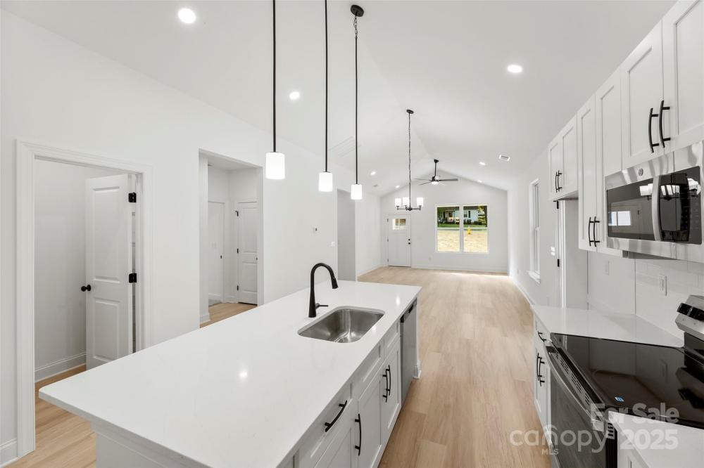 This light and airy NEW CONSTRUCTION gem blends modern design with everyday comfort. Featuring three bedrooms and two bathrooms, the open floor plan plus vaulted ceilings create a bright, spacious feel throughout. SUPER RARE 2 Car Garage for this area, phenomenal for keeping your cars protected OR great for additional storage. The chef-inspired kitchen is a true showstopper — featuring a large island, quartz countertops, white subway tile backsplash, stainless steel appliances, abundant cabinetry, and a generous pantry for all your storage needs. The separate laundry room adds convenience, while a side deck accessible from the dining area is ideal for morning coffee or weekend entertaining. Each bedroom offers sizable closets and thoughtful finishes, ensuring a perfect balance of style and function. Located minutes from shopping, dining, and major highways (601, 29, 49 & I-85), this home delivers both modern living and everyday convenience. Don’t miss your chance to own this brand-new beauty!