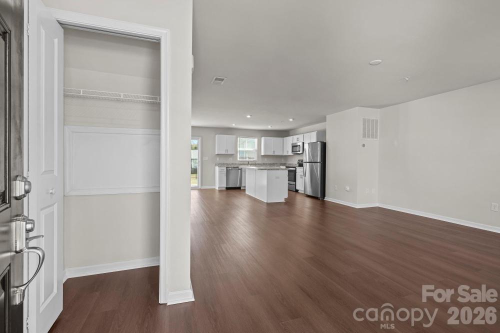 Welcome to this immaculate 4-bedroom, 2.5-bathroom home with a 2-car garage, located in Pendleton, a quiet neighborhood in the city of Concord, NC. This open-concept layout creates a welcoming, family-friendly atmosphere filled with comfort, including a versatile flex room on the first floor. Fresh paint throughout complements the newly installed luxury vinyl plank flooring on the main level. The kitchen features white cabinetry, stainless steel appliances (including refrigerator, microwave, dishwasher, and electric stove/oven), and a spacious island ideal for entertaining. Upstairs, you will find the laundry room (washer and dryer will convey) and four generously sized bedrooms. The large primary suite includes a walk-in closet and a bathtub-shower combo with a glass door. For an added layer of safety and peace of mind, this home is equipped with a built-in fire sprinkler system. As an added bonus, the seller is offering to contribute up to $5,000 toward the buyer's closing costs with an acceptable offer. With convenient access to Hwy 49, Hwy 3 (Branchview Dr), and Hwy 601, everyday commuting, shopping, and dining are all within easy reach.