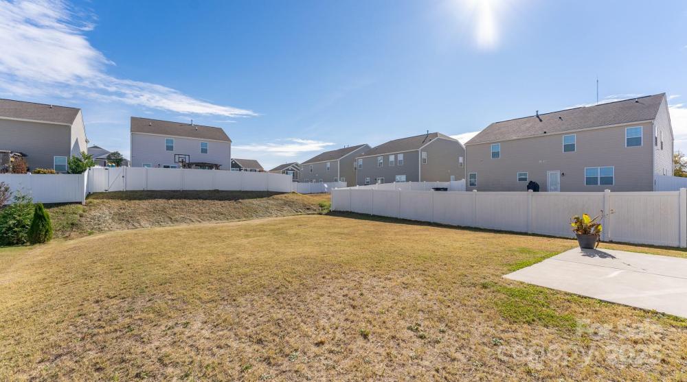 Meticulously maintained and filled with natural light, this stunning 4-bedroom, 2.5-bath home in the popular Roberta Ridge community is the one you’ve been waiting for! Built in 2019, close to the neighborhood swimming pool, this home features an open floor plan with a smooth flow that blends modern elegance with everyday comfort. Step inside to a bright, airy living room where sunlight pours in and a cozy fireplace creates the perfect spot for gatherings or quiet relaxation. The spacious dining room and kitchen connect seamlessly to the living area and feature granite countertops, a large pantry, and plenty of cabinet space- ideal for cooking and entertaining. Upstairs, the primary suite offers a peaceful retreat with a high ceiling and generous layout. 3 additional bedrooms provide plenty of space for family, guests, or a home office. Step outside to your private oasis: a large, flat backyard that’s a rare find. This open space is perfect for play, gardening, or future projects and connects to a charming patio ideal for grilling or enjoying peaceful evenings. Enjoy community amenities, including a sparkling pool and playground. With a prime location near I-485, I-85, Concord Mills, and Charlotte Motor Speedway, this home offers both comfort and convenience. Don’t miss your chance to make this beautiful property your new home!