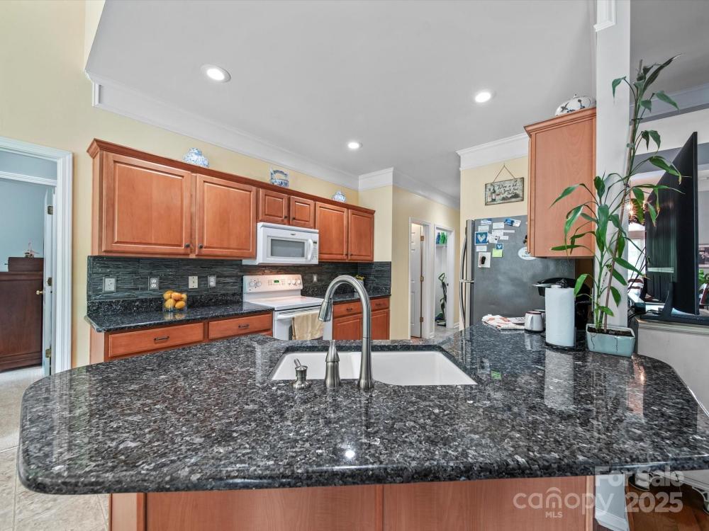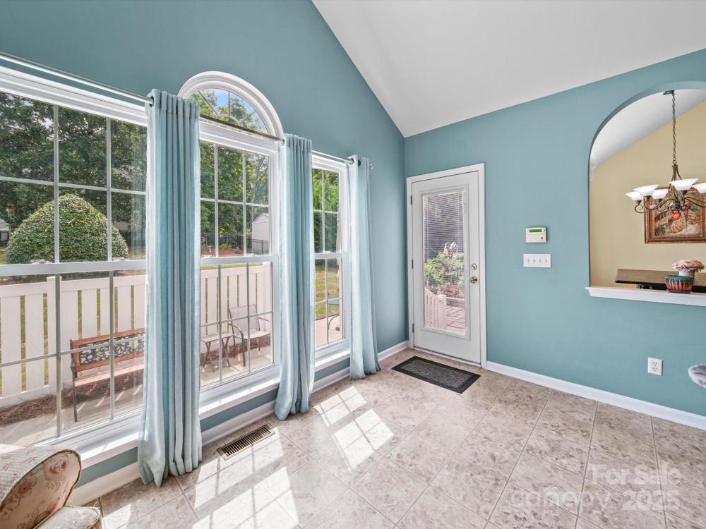 Welcome home to this beautiful 3 bedroom 2 bathroom full-brick ranch perched on a hilltop corner lot! Vaulted ceilings greet you upon entry, offering a grandiose feel and setting the tone for the open-concept layout where the dining room, great room, kitchen, and breakfast area flow together seamlessly. The great room features a cozy fireplace, and a sunroom at the back of the home adds extra charm and relaxation space. Windows with transferrable warranty, (thermal windows) were replaced in 2023. The thoughtfully designed split floor plan places the spacious primary suite—complete with soaking tub, separate shower, and dual vanities—on one side of the home, while the two secondary bedrooms and office are situated on the opposite side for added privacy. Enjoy 2 driveways for additional extra capacity for parking. Single-level living, beautiful updates, and a prime corner lot await! Close to shopping, lots of parks locally and the Sherman Branch Nature Preserve Mountain Bike Park is just 3 miles away!! Short drive to Concord Mills Mall, Charlotte Motor Speedway, ZMax Dragway, Concord Airport, Great Wolf Lodge, and so much more!! Learn more about the community here https://porterslanding.net Buyer Agents Welcomed!