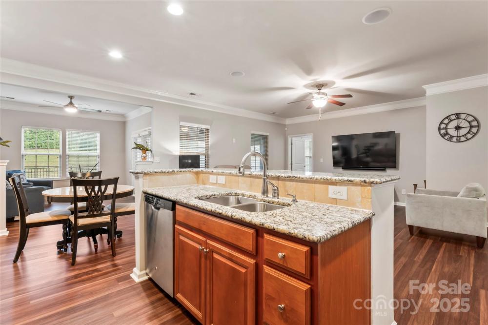 Immaculate maintained home is ready for its new owner! New LVP flooring in main area of house. Neutral paint throughout. Great room open to the beautiful spacious kitchen with large island and a pantry. Keeping room off the dining area. Primary bath has oversized spa-like shower with bench and tile from floor to ceiling. Primary bedroom has custom closet. Double crown molding throughout the house. Sunroom with easy breeze windows. Mount for TV and ceiling speakers in sunroom which convey. Enjoy all the amenities that Mills at Rocky River including the community pool with slide, playground area, volley ball area and fitness center! Don't miss out on this one!